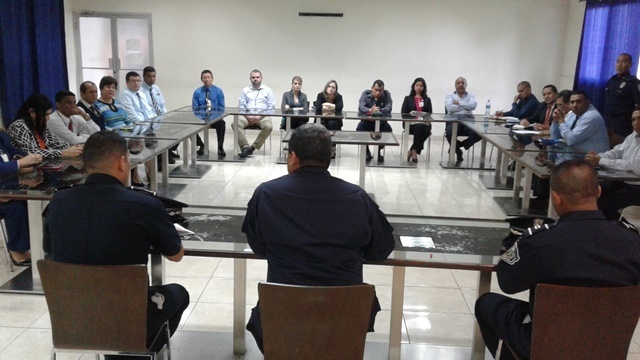 El Comisionado Eric Javier Amaya Sánchez, Jefe de la 4ta. Zona Policial de Chiriquí, junto a las unidades policiales de servicio en el Departamento de Seguridad Ciudadana en la provincia, se reunieron con 21 encargados de seguridad de las diferentes instituciones bancarias de la provincia. Esta reunión se realizó en la Estación Policial de David y tuvo como finalidad buscar estrategias de seguridad en este mes de diciembre, ya que se entregan los ahorros navideños, para evitar que la ciudadanía, sea víctima de los delincuentes. El Jefe de la 4ta Zona, manifestó que se unificaron varios criterios y se dieron algunas recomendaciones para un trabajo en conjunto. “Debemos mantener una comunicación permanente con estas instituciones bancarias”, acotó el Comisionado Amaya. Esta es la segunda reunión en menos de un mes que se realizan con los encargados de la seguridad bancarias en la provincia. |