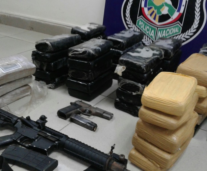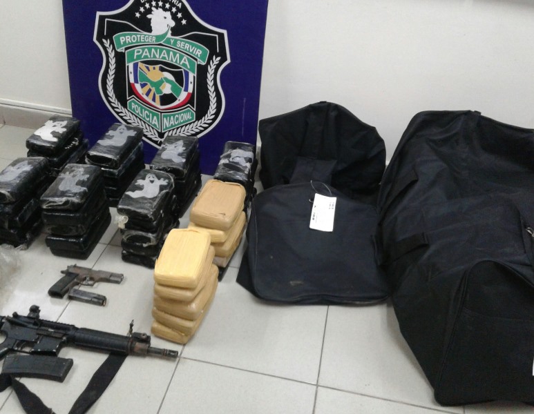Unidades de la Policía Nacional de servicio en Narcóticos de la Zona de Policía de Herrera en coordinación con la Fiscalía Delegada de Drogas incautaron un total de 48 paquetes con un polvo blanco que se presume sea la droga conocida como cocaína y dos armas de fuego, una pistola 9mm y un fusil de guerra, con 15 municiones respectivamente La acción se produjo mediante la operación denominada Camino, en una finca ubicada en la comunidad de la Colonia de el corregimiento de Paris de Parita. Cabe señalar que en momento de la acción policial una persona de 18 años de edad fue aprehendida. También hay que resaltar que los paquetes tenían una imagen de la cómica de un fantasma. La Policía Nacional en Herrera va a continuar con los operativos para sacar de circulación a personas dedicadas al tráfico de estupefacientes. |