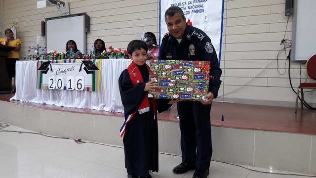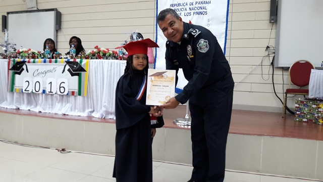 En horas de la mañana de este vienes 9 de diciembre, el Centro de Orientación Infantil “Los Pininos” de la zona policial de Colón llevó a cabo la graduación de 31 estudiantes tras culminar satisfactoriamente el kínder. Los estudiantes que estuvieron acompañados de sus padres estaban muy alegres al igualo que los padres quienes estaban orgullosos deber que sus niños culminaron una etapa en sus estudios. La subteniente Ivetth Callazo, encargada del centro infantil dijo a los niños que ella y las maestras se sentían satisfecha del deber cumplido y que saben que estos niños cuando entren al primer grado estarán bien preparados. El comisionado Carlos Rumbo, jefe de zona que presidio la graduación felicitó a los niños y los exhortó a continuar con ese mismo empeño que pusieron en aprender sus lesiones en el kinder la pongan cuando empiecen la segunda etapa en sus estudios. El acto se realizó en el auditórium de centro regional universitario de Colón