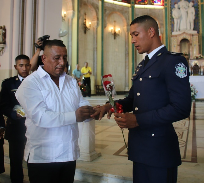 A primeras horas de este sábado 10 de diciembre, se llevó a cabo la ceremonia religiosa donde fueron bendecidos los anillos de graduación de la Décimo sexta promoción de la Escuela de Oficiales de Policía, Dr. Justo Arosemena (ESOPOL). Esta eucaristía se llevó acabo en la Basílica Menor Don Bosco, encabezada por el capellán de la Policía Nacional Edgar Flores quien dio la bendición de los anillos y a cada uno del alférez que conforman esta promoción. Estos estuvieron acompañados por familiares quienes le hicieron entrega del anillo que representa la entrega, sacrificio y compromiso con la nación. Quien aprovechó el momento para darle un mensaje a los alférez exhortándolos a seguir adelante y servirle a la patria, fue el Director General de la Policía Nacional Omar Ariel Pinzón. En los próximos días estos estudiantes recibirán su título universitario, además del rango de Subteniente de la Policía Nacional para seguir incrementando su pie de fuerza con jóvenes para serviles al país.