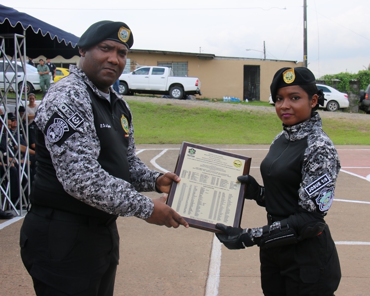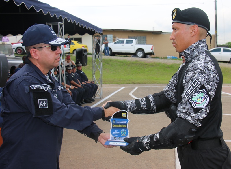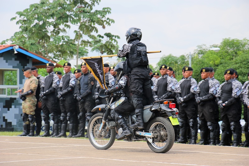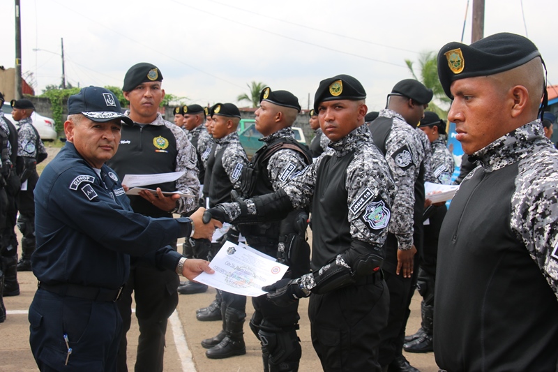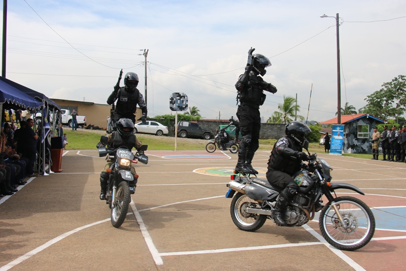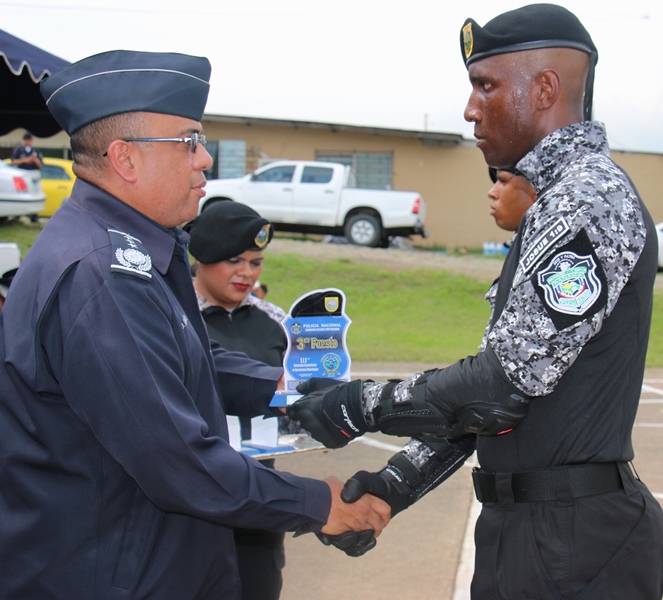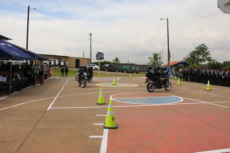 Un total de 81 miembros de estamentos de seguridad culminaron satisfactoriamente lunes 12 de diciembre el “III Diplomado Especializado en Operaciones Motorizadas” organizado por la Policía Nacional a través del Servicio Policial Motorizado “Lince” El Subdirector en Asuntos Penitenciarios de la Policía Nacional, David Ramos Villa, presidió este acto de graduación a nombre del Director General, Omar Ariel Pinzón Marín e hizo entrega de un reconocimiento a los 3 primeros lugares de honor del diplomado. Son ellos el Cabo Primero Benjamín Barrios (primer puesto), Subteniente Erick Villarreal (segundo puesto) y en el tercero el Cabo segundo Manuel Panezo. Ramos dijo que la institución se siente orgulloso de contar con este Servicio Policial Motorizado que ya ha sido referencia internacional. “Me enorgullece su formación porque llevan consigo la disciplina, destreza y honor, en combate contra la delincuencia” agregó. La ceremonia de graduación inició con la invocación religiosa a cargo del Capellán de la institución Arnulfo Jiménez, quien dio su bendición a las nuevas unidades motorizadas, que tendrán la tarea de velar y salvaguardar la seguridad de la ciudadanía. La agente Karla Vargas hizo entrega de una placa de reconocimiento al Subcomisionado Ricaurter De La Espada, Jefe Nacional del Servicio Policial Motorizado Lince. Dentro de este seminario cuya duración fue del 29 de agosto hasta el 5 de diciembre, se trataron temas como: Maniobras y destrezas, técnicas de desplazamientos, técnicas de intervención policial, primeros auxilios, normas de tránsito y seguridad vial, equipo de protección motorizada, entre otras. Participaron miembros de la Policía Nacional, Servicio Nacional Aeronaval y Servicio de Protección Institucional, quienes realizaron una demostración de destrezas y habilidades adquiridas durante los meses que estuvieron en el diplomado. Al acto de graduación asistieron también, Miembros del Directorio Policial, Jefes de las Zonas de Policía, autoridades del Ministerio de Seguridad, Servicio Nacional Aeronaval, Servicio de Protección Institucional y Familiares de las unidades.