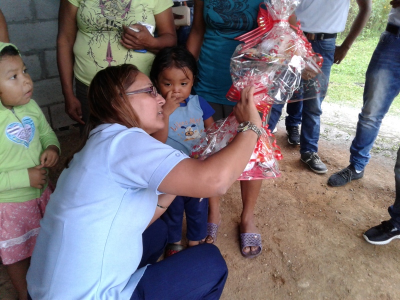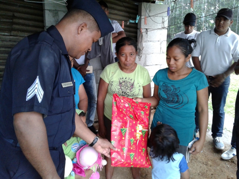 Motivados por el espíritu navideño, unidades del Departamento de Reclutamiento y Selección de la 2da. Zona Policial, acompañados de jóvenes aspirantes, llevaron alegría, a una humilde familia del sector de La Soledad en el Retiro de Río Hato. No fue obstáculo la pertinaz lluvia que caía, ni el camino pedregoso para llegar a el hogar de la familia Jaramillo Herrera, la misión era llevar alegría. Conmovida por las muestras de apoyo Briseida Jaramillo de 49 años de edad, madre y abuela, junto con sus hijas Leydis y Yamileth Herrera de 19 y 26 años de edad y sus nietos Alexis, Yen y Yamileth de 3, 5 años y tres meses, recibieron juguetes, canastas de comida y ropa de parte de las unidades. "Estoy muy agradecida con todos ustedes, Dios los bendiga por ese corazón tan grande y haber llegado a este humilde hogar " fueron las palabras de la señora Briseida. Por su parte la subteniente Yasmina Bethancourth, manifestó que el departamento se organizó, para llevar un poco de felicidad a familias de escasos recursos económicos y compartir con ellos en estas fiestas de fin de año. En esta actividad acompañaron las subtenientes Yasmina Bethancourth , Susana Salas, el sargento Algis Bethancourth, la licenciada Danaisi Vergara y los jóvenes aspirantes quienes compartieron con la familia Jaramillo Herrera. |