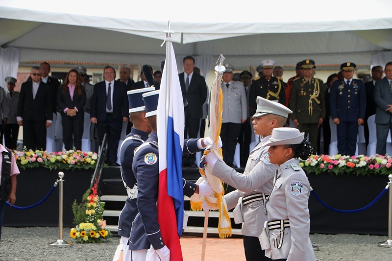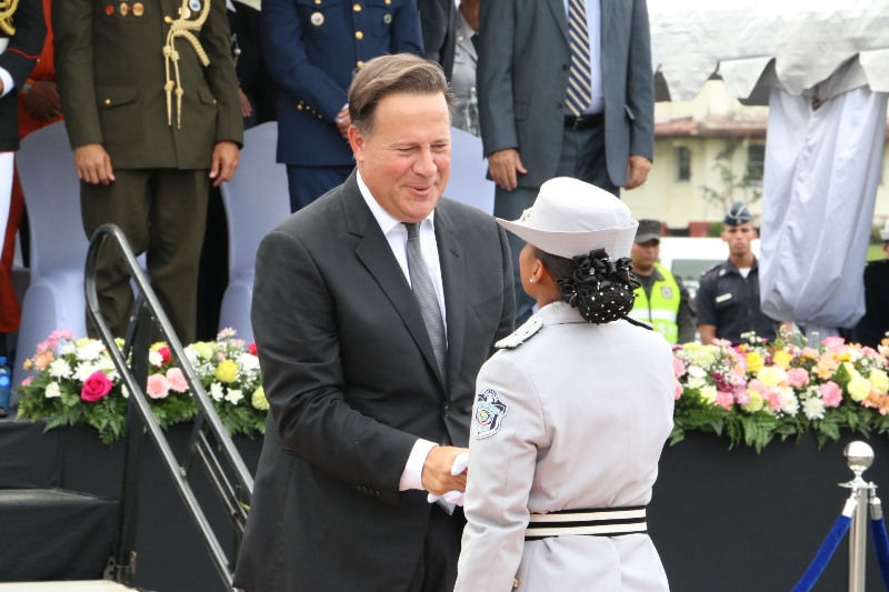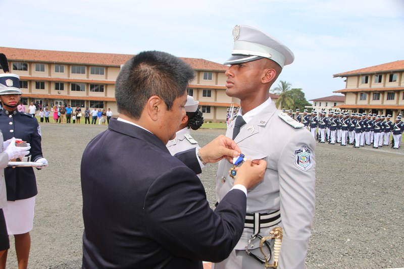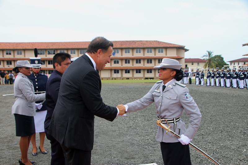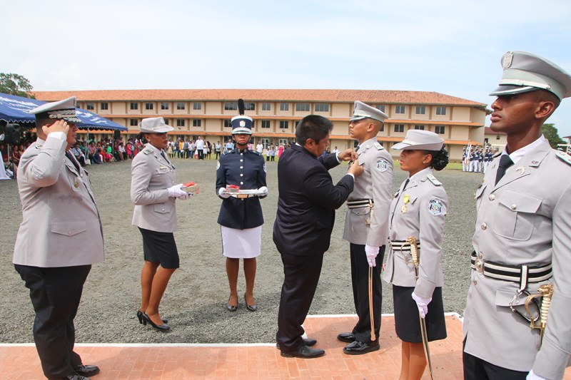 Un total de 74 alféreces de la “Décimo Sexta Promoción General Victoriano Lorenzo”recibieron hoy 14 de diciembre sus respectivos sables y certificados que los convierten en nuevos oficiales en el rango de subtenientes al servicio del país, durante una ceremonia realizada en la Escuela de Oficiales de Policía, Dr. Justo Arosemena de la Policía Nacional, ubicada en el corregimiento de Cristóbal, provincia de Colón. "Felicito a estos 74 jóvenes que culminaron esta etapa profesional para servir a los panameños" dijo el Presidente de la República, Juan Carlos Varela, quien destacó se está invirtiendo los recursos necesarios para profesionalizar a los estamentos de seguridad para enfrentar con éxito a la delincuencia. Por su parte, el Director General de la Policía Nacional, Omar Ariel Pinzón Marín resaltó la responsabilidad que tendrán de dejar en alto el buen nombre de la institución, de aportar a las estrategias de seguridad y ser guías de las futuras generaciones de policías con el coraje para enfrentar la dura misión de proteger y servir a Panamá y a sus ciudadanos. “Se alistaron en nuestra gloriosa Escuela de formación de oficiales Dr. Justo Arosemena, cual acero puro para ser forjados como damas y caballeros de nuestras instituciones de seguridad pública, con el fin de defender y hacer cumplir los preceptos constitucionales de garantizar la vida, bienes y honra de todo ciudadano que se encuentre en el territorio nacional”, dijo el Director General, Pinzón Marín. Pinzón mencionó los importantes logros de la Policía Nacional en docencia y preparación académica, destacando que en el 2016 se dictaron 68 cursos en 454 eventos académicos, beneficiando a 20 Instituciones y 5 países, entre ellos España Paraguay, Chile, El Salvador y Costa Rica. De modo paralelo, se ha logrado graduar a doce mil doscientos treinta y seis (12,236) componentes policiales y funcionarios del Estado en temas de Seguridad Ciudadana, Sistema Penal Acusatorio, Operaciones Policiales, Planeación del Servicio Policial, Mediación Policial, Protección del medio ambiente, entre otros. Así mismo, el Director General Omar Ariel Pinzón Marín hizo mención especial de los tres graduandos que alcanzan sus metas con los más altos índices integrales: los oficiales Keysis Kerineth de Gracia Sandoval, Adán Isaac Beitía Beitía y Crisanto René Foster Melo. Le correspondió al Ministro de Seguridad Pública, Alexis Bethancourt Yao junto al Director General de la Policía Nacional, Omar Ariel Pinzón Marín hacer entrega de la medalla Dr. Justo Arosemena a los 3 primeros puestos de esta promoción. En dicho evento se graduaron 2 oficiales de República Dominicana, 1 de El Salvador, además de 1 miembro del Servicio Nacional Aeronaval (SENAN) y 2 del Servicio de Protección Institucional (SPI). Adicional participaron 13 subtenientes egresados del extranjero en 2016: 9 de Colombia, 2 de Taiwan y 2 de Chile. La disciplina, el liderazgo, la vocación de servicio, los valores éticos y morales, son parte de las cualidades que caracterizan a los nuevos oficiales que hacen honor al líder revolucionario de la Guerra de Los Mil Días, General Victoriano Lorenzo, ilustre personaje de nuestra historia por quien bautizaron esta décimo sexta promoción.