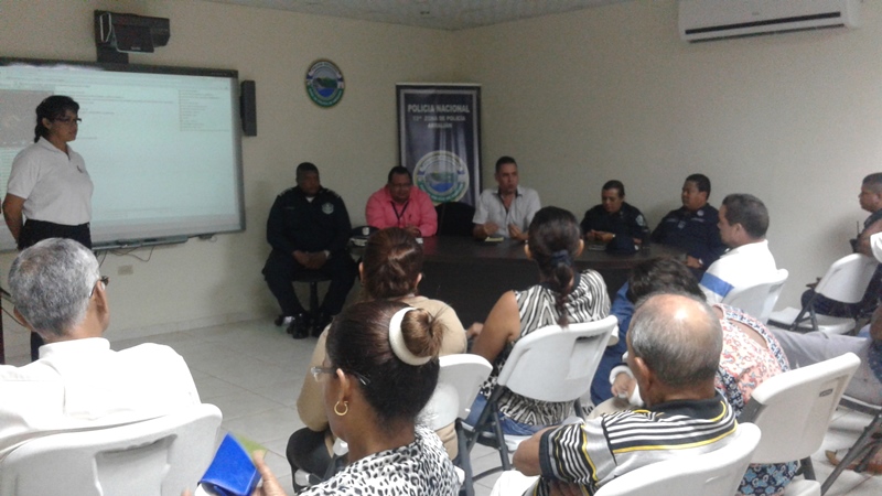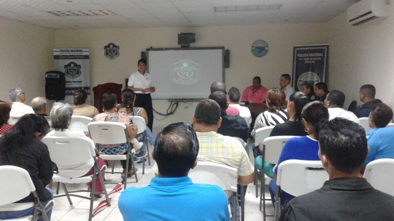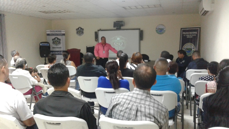 Un total de 65 miembros de distintas comunidades organizadas con Vecinos Vigilantes participaron este miércoles 14 de diciembre en la última rendición de cuentas de este año, organizada por la Treceava Zona Policial de Arraiján, a través del Departamento de Seguridad Ciudadana. El encuentro tuvo lugar a las 7:00 de la noche en el Salón de Reuniones de la sede de la Policía Nacional en Arraiján, donde los participantes fueron orientados por el licenciado Julio Alonso, Fiscal de Arraiján sobre el Sistema Penal Acusatorio. Seguido la licenciada Elizabeth González del Instituto Nacional de la Mujer les habló sobre la violencia doméstica. El Comisionado Luis Navarro agradeció a los asistentes la colaboración que durante el año brindaron a la Policía Nacional, a la vez, reiteró las medidas de seguridad para prevenir un delito. En la reunión también participaron el Comisionado José Flores, Ejecutivo de la Zona, Subcomisionada Emilsa Moreno, encargada de Violencia Doméstica y el Licenciado Alexis González, Presidente del Comité distrital de vecinos Vigilantes. |
