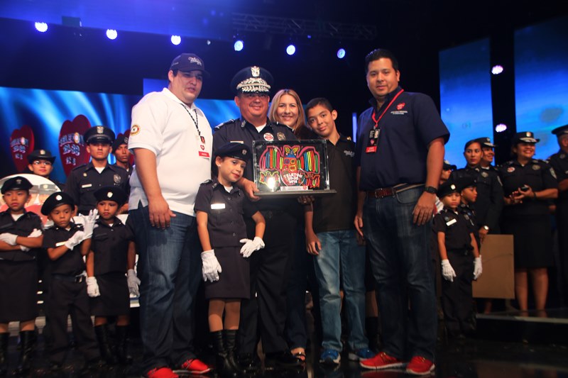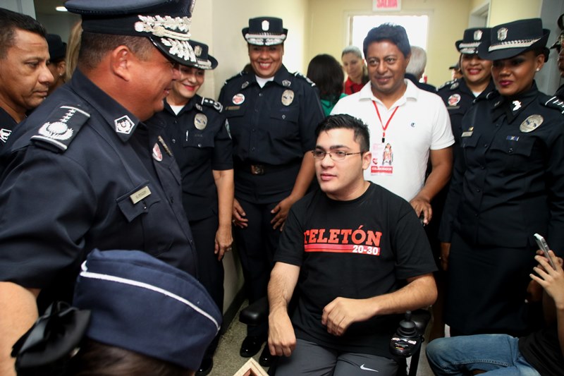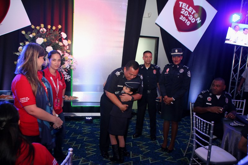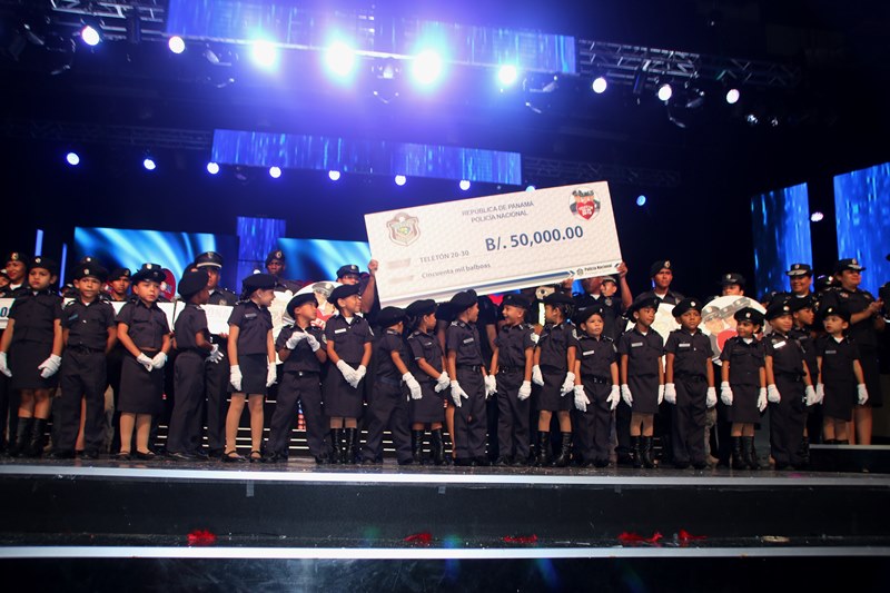 Con una donación de 50 mil dólares los 18 mil hombres y mujeres que integran la policía Nacional de Panamá brindaron su aporte de corazón a la noble causa de la Teletón 20-30, correspondiente al presente año 2016, entregada por una delegación encabezada por el Director General Omar Ariel Pinzón Marín y miembros del Directorio Policial de esta institución. La Asociación de esposas de oficiales, Damas de A.S.U.L., también se solidarizaron con esta noble causa con otra donación de 5 mil dólares. “Los hombres del orden, del bien y la disciplina estamos muy contentos de apoyar las mejores causas, como siempre lo hemos hecho en busca del bienestar de todos los panameños y en especial de su juventud y de la niñez”, comentó el Director de la Policía Nacional Omar Pinzón. “La institución policial se solidariza con esta iniciativa desarrollada por la Teletón 20-30 con la cual hemos tenido una relación muy apegada en las diferentes facetas de nuestra vida y por eso siempre le hemos dicho: Presente”, añadió Pinzón. Correspondió a un grupo de aspirantes a policías que integran el Instituto Superior Policía, Ispol, brindar una demostración de condiciones físicas, armonía, trabajo en grupo, orden y disciplina a través de una coreografía que mostró todas estas cualidades indispensables en la formación de un agente de policía eficiente y comprometido con la labor policial que realizará en beneficio de la comunidad panameña. No menos importante fue la presentación de un grupo de niños del Centro de Orientación Infantil (Coif) de la Policía Nacional, los cuales dieron muestra de su buen comportamiento y disciplina.