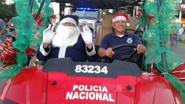 Con una representativa delegación la 4ta. Zona Policial de Chiriquí se hizo presente en el desfile navideño, organizado por la Alcaldía del distrito de David. Desde muy temprano chicos y grandes tenían sus puestos guardados a orillas de la calle, con el propósito de disfrutar de una noche llena de alegría y un ambiente de seguridad que caracteriza la celebración del nacimiento del Niño Jesús. La delegación de la Policía Nacional estuvo conformada por los niños y niñas del Centro de Orientación Infantil, “COIF” Fuente del Saber, quienes repartieron confites y golosinas. Seguido, el Grupo Juvenil Canino, “Grujucan” y el Grupo Scout 87, dirigidos por el Sargento 1ro. Héctor García, de servicio en el departamento de Seguridad Ciudadana en la provincia. Un alegre Santa Claus y dos amazonas también formaban parte de esta delegación. El comisionado Eric Amaya Sánchez, jefe de la 4ta Zona Policial de Chiriquí manifestó que se desplegó un operativo de seguridad para mantener el orden. Además de la participación en el desfile, se mantuvo la presencia policial en las áreas comerciales, bancarias y residenciales, garantizando la seguridad de los ciudadanos dijo Amaya. |