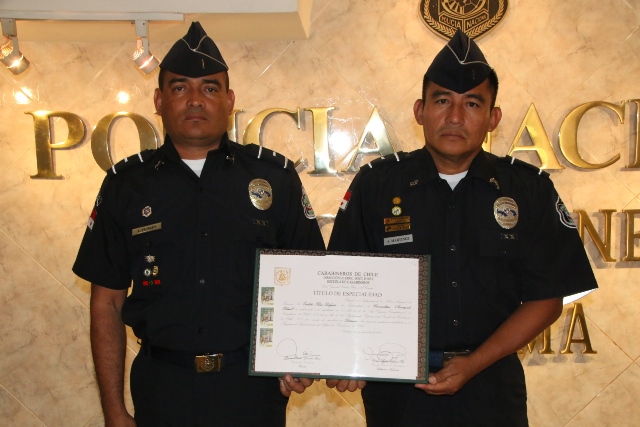 Oficiales de la Policía Nacional regresaron a suelo panameño, luego de finalizar el “Curso Especialidad en Criminalística (Investigador Policial)”, en Chile. Las unidades policiales de servicio en la Dirección Nacional de Docencia (Instituto Superior Policial) y la Subidrección de Investigación Judicial en el Departamento de Homicidio en la provincia Coclé, recibieron docencia durante 10 en 16 materias de Inteligencia, Criminología, Psicología Criminalística, Estadística, Ingles, entre otras. Es muy importante que las unidades participen de este tipo de cursos ya que los ayudan a las investigaciones y en los diferentes procesos que se llevan a cabo dentro del Sistema Penal Acusatorio. Los dos subtenientes fueron recibidos por el Secretario General el comisionado Manuel De León, quien los felicitó, y exhortó a compartir los conocimientos adquiridos con las demás unidades policiales. |