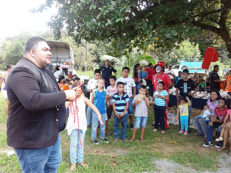 En el Parque de La concepción de Parita, unidades de la Zona de Policía de Herrera realizaron un agasajo a todos los niños de las comunidades de Potuguilla y La Concepción. En la actividad participaron más de 150 personas entre niños y adultos, acompañados por el comisionado Ismael Herrera Delgado, Jefe de la Zona de Policía de Herrera y su equipo de trabajo. El agasajo fue todo un éxito con la participación de más de 150 personas; donde cada niño recibió sus regalos, al igual que golosinas, helado, pizza, piñatas y una bolsita con uvas, galletas, jugos, partillas y manzana. Pero el momento de diversión no termino ahí, sino que también estuvo el Payaso Felitin, y su acompañante alegrando con sus juegos toda la mañana y también actos de magias con el mago Mijaíl. Es importantes los niños se divirtieron hasta el cansancio en los juegos inflables que se instalaron en el lugar.