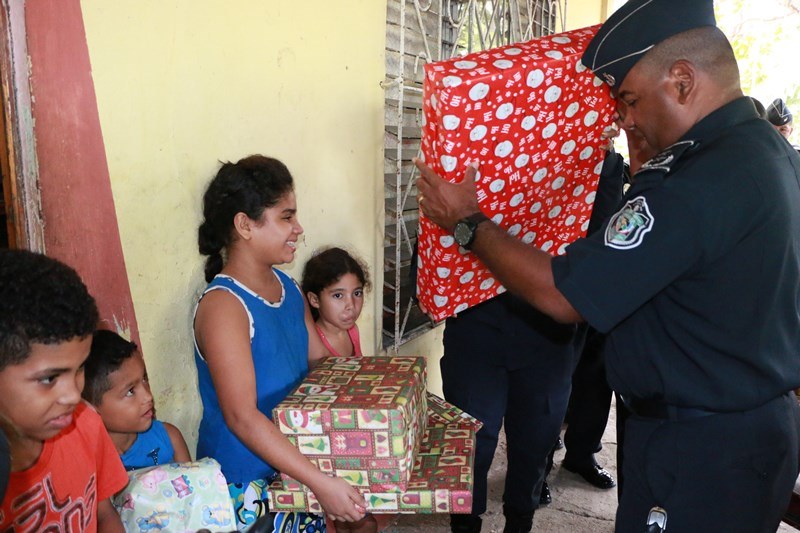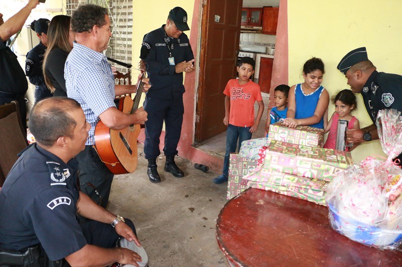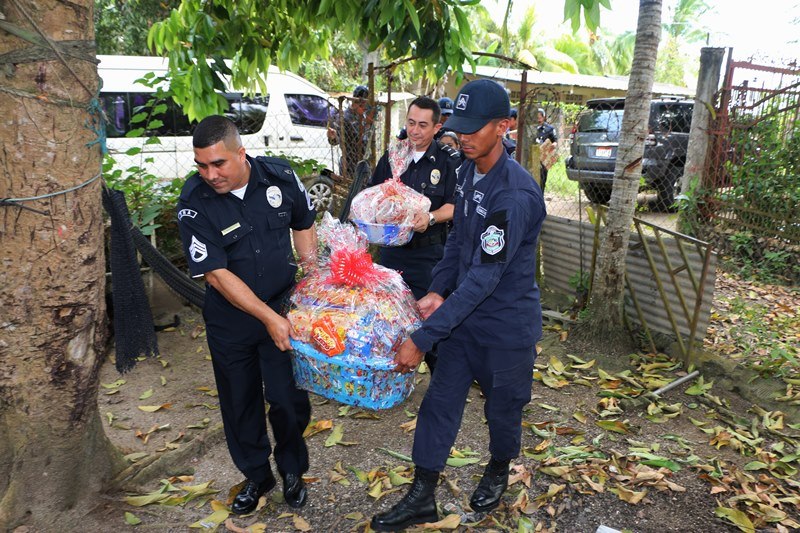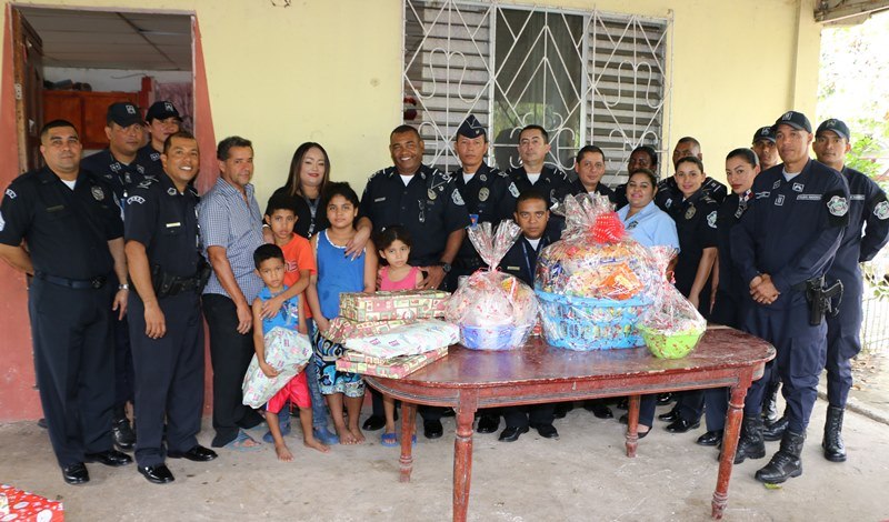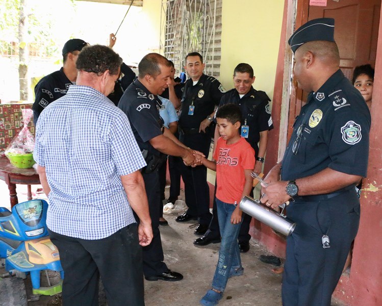 En un gesto de solidaridad, amor y entrega al prójimo, la Policía Nacional a través del Dirección Nacional de Armamento, llevó sonrisas y alegría en la mañana de este jueves 22 de diciembre en víspera de La Navidad a una humilde familia, en la apartada comunidad de El Chumico, del corregimiento de Veracruz. La labor social se dio el marco de la celebración de los 26 aniversario de Dirección Nacional de Armamento y consistió en entrega de canasta de comida, regalos, juguetes y ropa a 4 infantes que están bajo el cuidado del señor Adolfo García, policía jubilado, quien hace lo imposible, a pesar de su situación económica por brindarles los mejor a sus nietos a pesar de las adversidades. El señor García agradeció este gesto tan hermoso que ha hecho la Policía Nacional, con su sus pequeños nietos. Durante la entrega, el subcomisionado Casto Ramos, Jefe de la Dirección Nacional de Armamento de la Policía Nacional, expresó sentirse feliz de poder compartir y llevarle un poco de alegría a los niños y niñas de esta familia que nada tiene y viven en condiciones precarias, que puedan compartir una cena navideña en su mesa, con sus seres queridos.
