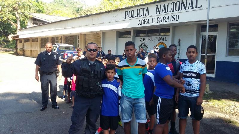 Niños de Paraíso y comunidades aledañas en el corregimiento de Ancón junto a miembros de la Policía Nacional inauguraron este lunes 23 de enero de 2017 la liga de balompié (fútbol) que surge como una alternativa amena para compartir durante las vacaciones de verano. El teniente Rody Quintana, encargado del área “C” de Paraíso y el sargento Olmedo Abrego, de Seguridad Ciudadana, ambos de la Zona Policial del Canal fueron los encargados de hacer realidad esta liga conformada por niños de 6 a 11 años pertenecientes a las comunidades de Guna Nega, Pedro Miguel y Paraíso ( Norte y Sur). Antes de iniciar el primer juego, el comisionado y jefe de la Zona Policial del Canal, Néstor Valdez les dio la bienvenida a los participantes instándolos a practicar lo aprendido en las charlas, a continuar con el deporte y a meterle mucho empeño a los estudios. Además de compartir reciben charlas sobre la presión de grupo, la importancia de los valores y buenas conductas para lograr la sana convivencia. Durante este verano 2017, la Policía Nacional desarrolla diversas actividades recreativas, deportivas y culturales convirtiéndose en espacios que alejan a los niños y jóvenes de los peligros, a la vez que se divierten de manera sana.