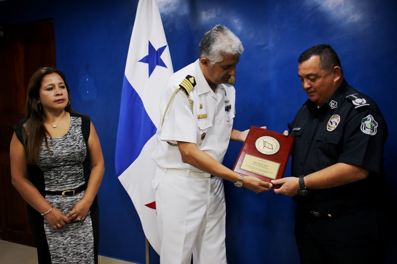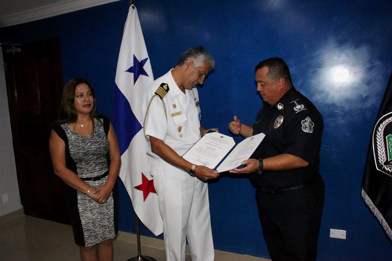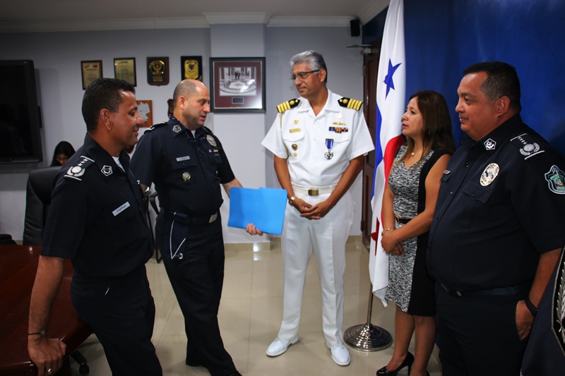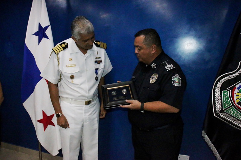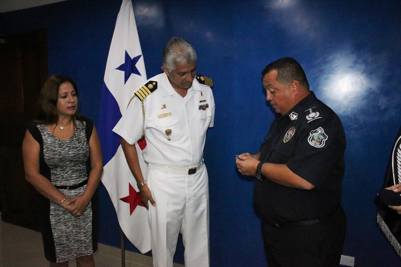 Con una charla amena, recordando anécdotas de las experiencias vividas, el Director General de la Policía Nacional Omar Ariel Pinzón Marín, despidió al Capitán de Navío Julio Vela Alarista, Agregado de defensa de la Embajada de Perú concurrente en la Republica de el Salvador. El Capitán Vela, quien estuvo por dos años en suelo panameño, agradeció a la familia policial por brindarles su amistad, conocimientos de la cultura nacional e intercambio de experiencias profesionales. Por su parte el Director General Omar Ariel Pinzón Marín, expresó la importancia que existe entre ambos países en ámbito profesional, permitiendo que Cadetes panameños puedan formarse en escuelas policial del Perú, y viceversa. Pinzón, hizo entrega especial de la Medalla de Policial Nacional al Capitán Vela, que solo es otorgada a Directores de Policías, Agregados Militares y Navales, y su esposa Carolina Caro de vela recibió obsequios institucionales. A su vez Vela, también le obsequio presentes Institucionales de al Jefe de la Policía Nacional de Panamá. En el acto también participaron el Sub Director General de la Policía Nacional Javier Castillo, el Sub Director de Asuntos Penitenciarios David Ramos y el Comisionado Abel Crespo, Jefe de Sedes Diplomáticas. |