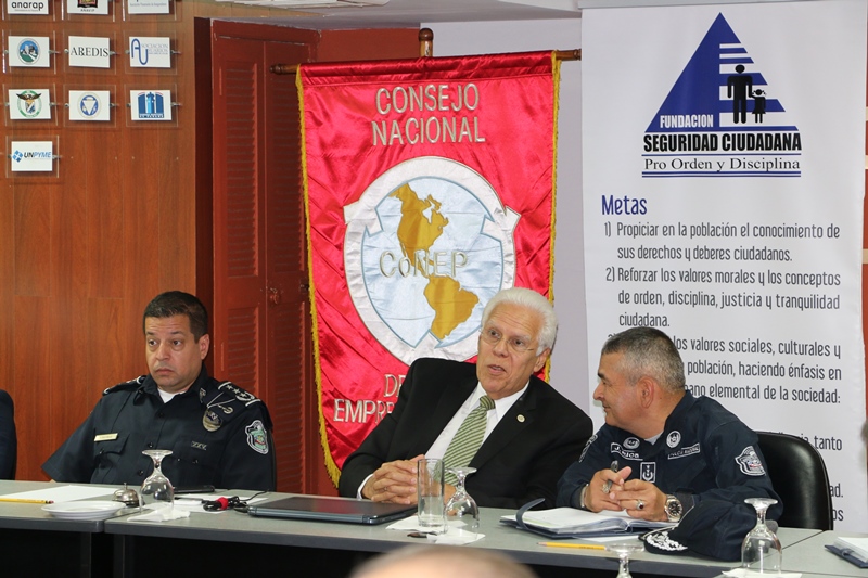 Unidades policiales se reunieron este miércoles 8 de febrero, con la Fundación Seguridad Ciudadana Pro Orden y Disciplina, en el Salón Dulcidio González del Consejo Nacional de la Empresa Privada (CoNEP). Esta reunión estuvo presidida por el señor Ezequiel Vargas, presidente de esta fundación acompañado por varios miembros del CONEP. Por parte de la Policía Nacional estuvo el comisionado y director de la Dirección Nacional de Operaciones, José Ríos; el comisionado Domingo Espitia Jefe de Planeamiento; comisionado Joaquín Vergara, director Nacional de Telemática; el comisionado Jorge Escobar, Director Nacional de Docencia y el Comisionado Rafael Álvarez Jefe del Departamento de Seguridad Ciudadana. La misma busca acertar en herramientas tecnológicas necesarias para que el trabajo en conjunto entre las empresas privadas y la Policía Nacional, sea rápido y efectivo para combatir los hechos delictivos. Es importante apoyar e intensificar la labor de vigilancia que realizan las unidades policiales en los diversos sectores del país.