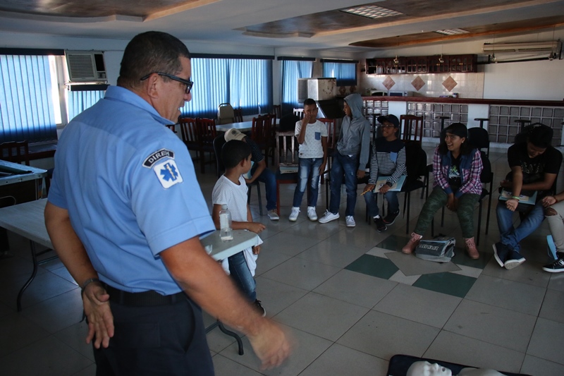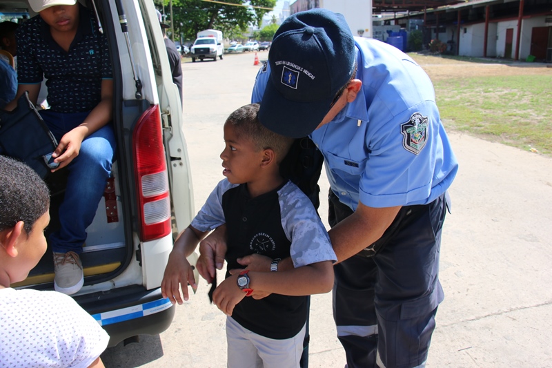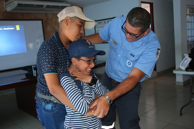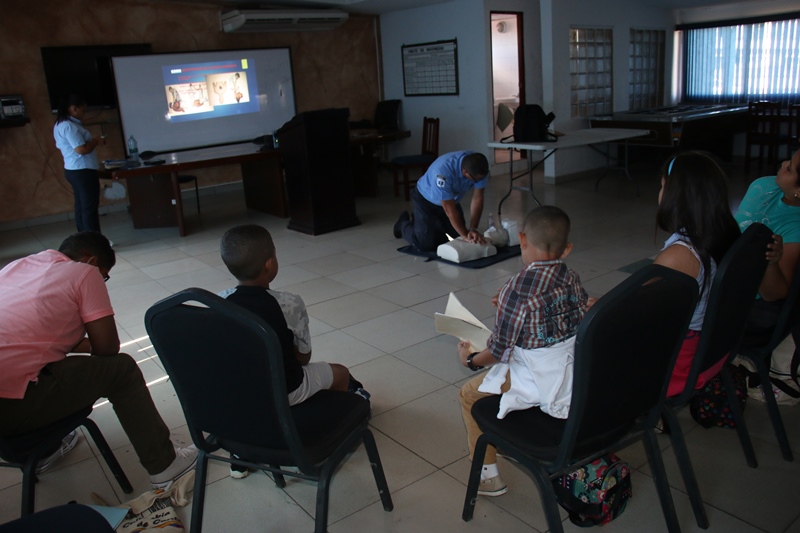 Un total de 20 niños participaron del seminario de primeros auxilios básicos, dictado por el subteniente Manuel Jurado de los servicios médico de la Policía Nacional, en el salón de ingeniería e infraestructura de la sede en Ancón, este martes14 y miércoles 15 de febrero de 2017. Durante dos días se les enseñó el principio de acción de emergencia entre ellos, desmayo, shock, respiración de salvamiento, ovase (obstrucción de la vía aérea cuerpo extraño), Rcp adulto, heridas, homografías (clasificación y tratamiento), fracturas y quemaduras. También, realizaron una gira a la clínica de la institución y observar los implementos que están dentro de las ambulancias al presentarse una urgencia. Los niños cumplieron con 16 horas de capacitación de primeros auxilios básicos, además de las teorías pusieron en práctica lo aprendido por el instructor. Esta actividad forma parte del programa verano feliz que organiza la Policía Nacional, a través de la Dirección Nacional de Bienestar y Policial en la sesión de Trabajo Social. La Licenciada de Trabajo Social Ariadna del Rosario, consideró que han sido dos meses divertido al compartir con los niños que participan de las actividades desarrolladas, y adelantó que este viernes 17 de febrero será el cierre del programa verano feliz 2017 y se realizara en el parque Los Mangos en Balboas. A cada uno de los participantes se le hizo entrega de un certificado por haber culminado satisfactoriamente el seminario de Primeros Auxilios Básicos.