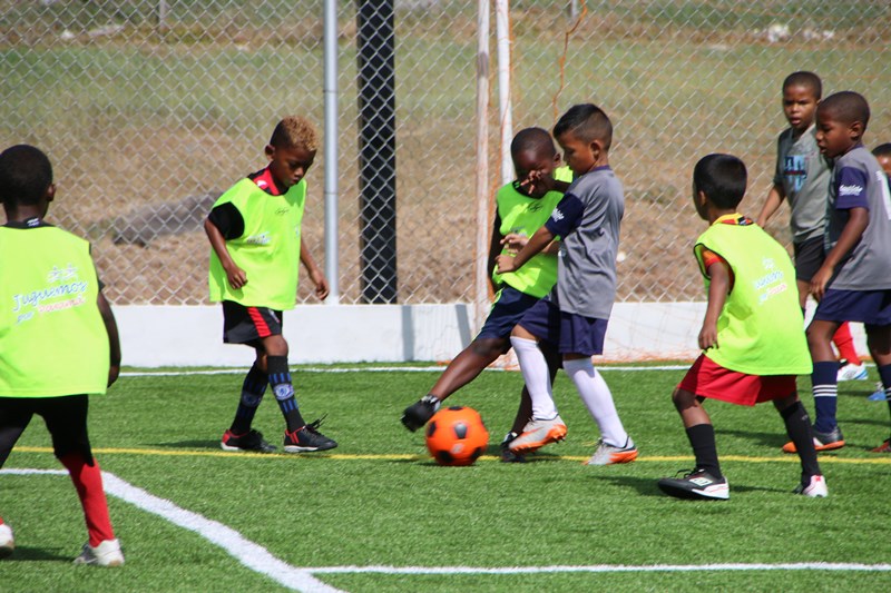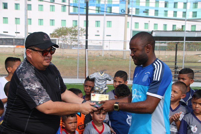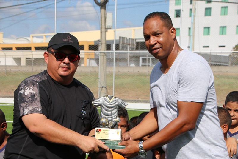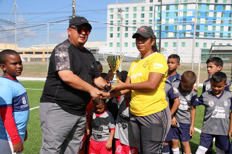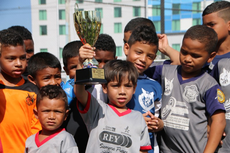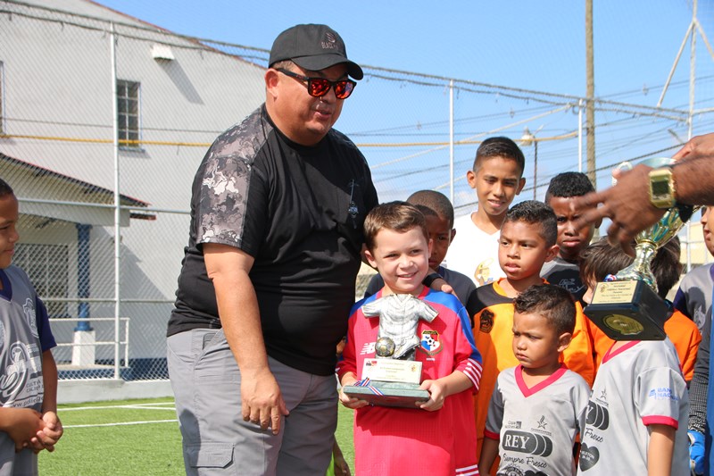 Los equipos de las categorías sub-5 y sub-7 del Atlético Nacional, entregaron formalmente dos trofeos ganados en Costa Rica al Director General de esta institución, Omar Ariel Pinzón Marín en la cancha sintética de la entidad ubicada en el corregimiento de Ancón. La sub-7 quedó campeón en su categoría, en tanto la sub-5 ocupó el segundo lugar, en la Torneo Rompiendo Frontera, en Alajuela Costa Rica. El director Omar Pinzón, recibió ambos trofeos muy agradecido y felicitó a cada uno de los jugadores por el desempeño realizado en este torneo. Para finalizar se realizó un partido amistoso entre equipos del Curundú F.C y Atlético Nacional de las categorías sub-5 y sub-7, en el cual el niño Aymar Naynar Aisprúa fue el goleador llevando al Atlético a la victoria. Las actividades deportivas que realiza la Policía Nacional, buscan que los niños refuercen los valores, el trabajo en equipo y la disciplina. |