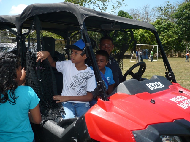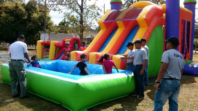 Las instalaciones del Instituto Superior Policial (ISPOL), se convirtió este viernes en un parque de diversiones para que los hijos de los colaboradores de la Dirección Nacional de Docencia de la Policía Nacional se divirtieran en una gran fiesta de despedida de vacaciones. Los niños de diferentes edades tuvieron la oportunidad de pasear en motos four wheel, recorrer las instalaciones del ISPOL en las motos de Los Linces, así como jugar en los brinca, brincas, bañarse en la piscina, jugar paintball, pintas caritas, entre muchas atracciones que se organizaron para que los niños pasaran momentos felices. No pudieron faltar las comidas, bebidas, los dulces con helados y las piñatas que fue del agrado de los menores y de sus padres que agradecieron al Director Nacional de Docencia, Comisionado Jorge Luis Escobar, la atinada iniciativa de hacer un alto en las responsabilidades académicas y administrativas. |