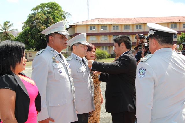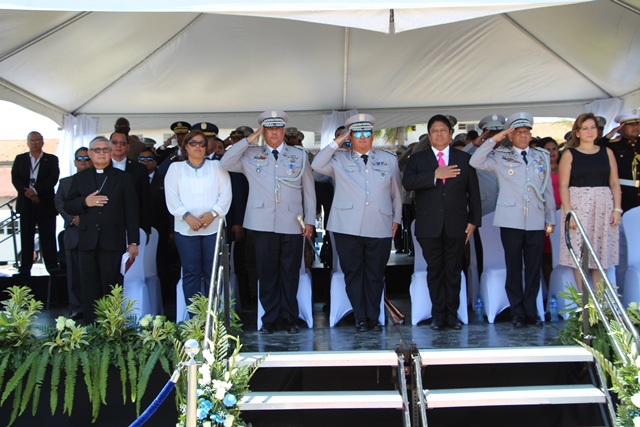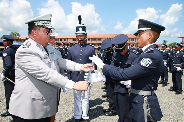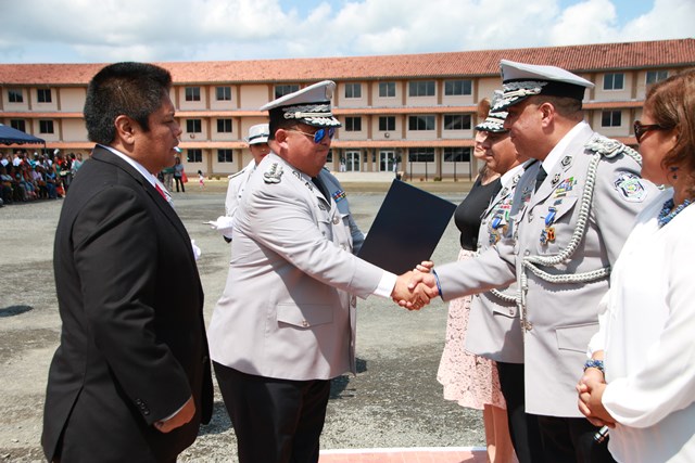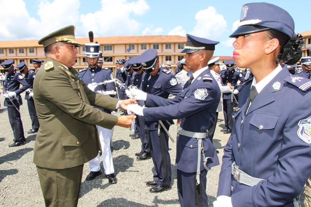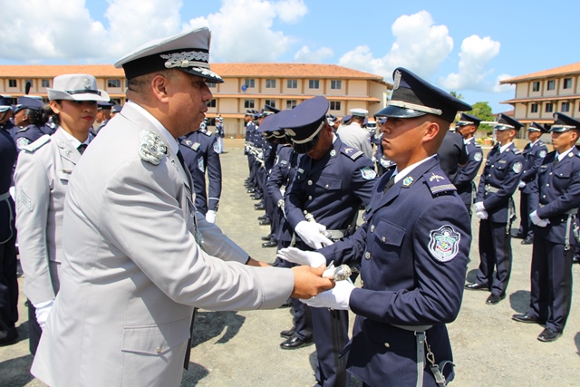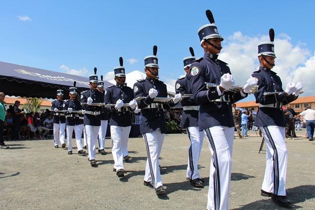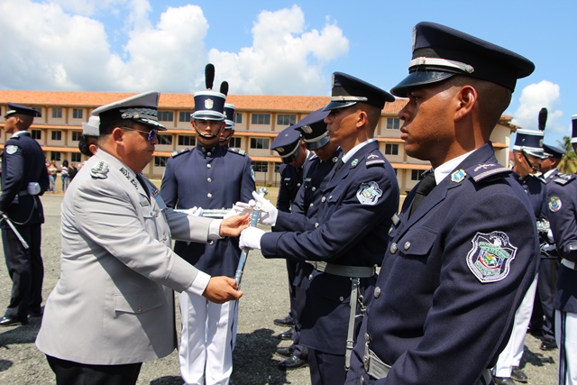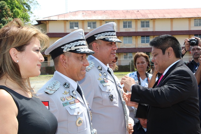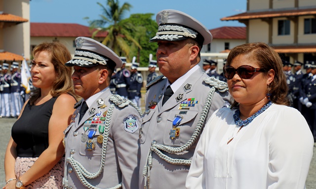 “Estos son oficiales ejemplo de una impecable trayectoria y que hoy salen por la puerta ancha, dejando en alto el buen nombre de la institución”, dijo el Ministro de Seguridad Publica, Alexis Bethancourt durante la ceremonia de reconocimiento al Subdirector General, Javier Castillo y Subdirector en Asuntos Penitenciarios, David Ramos Villa, quienes pasan a retiro tras cumplir 30 años de servicio continuos en la Policía Nacional. Por su parte, el Director General de la Policía Nacional, Omar Ariel Pinzón Marín destacó la excelente labor que llevaron a cabo en la fila de la institución policial ambos subdirectores y otros cuatro oficiales. “Con ustedes hemos compartido distintos momentos, cada uno con sus retos, hasta el presente, donde seguimos afrontándolos”, dijo durante esta ceremonia realizada este miércoles 22 de febrero en la Escuela de Oficiales de Policía Dr. Justo Arosemena (ESOPOL), ubicada en Colón. Ambos subdirectores junto a los comisionados Javier De León y Cristóbal Rivera recibieron la “medalla General de Brigada Remón Cantera”, además de obsequios por parte del Embajador de la República de Taiwán en Panamá, José María Liu. Así mismo, el comisionado, Víctor Alvarado del Servicio Nacional Aeronaval, quien también se jubila recibió la medalla Legión al Mérito General José Domingo espinar, Primera Clase. La actividad dio paso a la primera entrega de espadines en la Policía Nacional, otorgados a 306 cadetes de 2° y 3° año de la Esopol, como símbolo del relevo generacional, sentido de pertenencia a la Institución y liderazgo, que debe portarse con lealtad y patriotismo. Mientras que el Director General también entregó un espadín al ministro de Seguridad Alexis Bethancourt, por su liderazgo. En la actividad estuvieron presentes familiares de los oficiales en retiro y de los estudiantes de la Esopol, miembros del directorio de las entidades de seguridad, agregados militares, navales y policiales acreditados en el país e invitados especiales. La ceremonia de jubilación es un homenaje mediante el cual se les reconoce a estos policías en retiro su vida profesional marcada por una conducta intachable, siendo ejemplo a las nuevas generaciones que inician una vida institucional en la Policía Nacional y orgullo a sus familias. |
