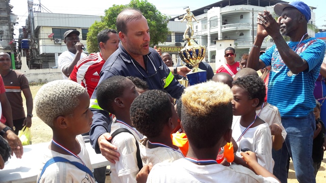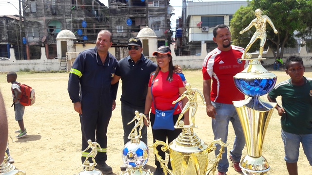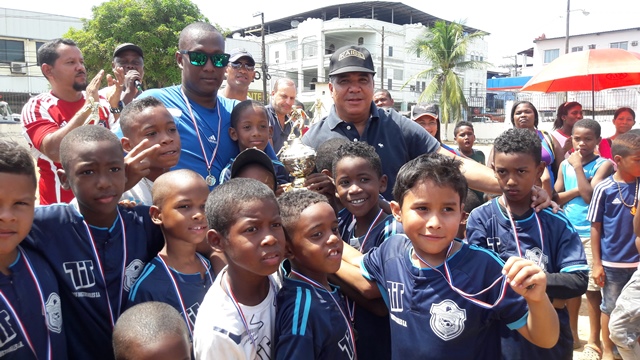 La zona policial de Colón, culmino este 24 de febrero, el campeonato de fútbol Policía Nacional Talleres Industriales en los que participaron 20 equipos de la sub 11 y 10 equipos de la sub 9 , de diferentes puntos de la provincia. En a sub 11 quedaron como campeones el equipo de Brooklyn ocupo el primer lugar, el mayor anotador fue el joven José Corpas del equipo Visión de Esperanza, el jugador más valioso fue Juan Carlos Hall, del equipo de Brooklyn. El la sub 9, el equipo ganador fue Visión de Esperanza, el mayor anotador fue Irving González, del equipo Sporty Colón y el jugador más valioso fue Luis Polo del equipo Los Guardianes. El comisionado Carlos Rumbo y el ingeniero Lino Arosemena entregaron los trofeos y medallas a los ganadores. |