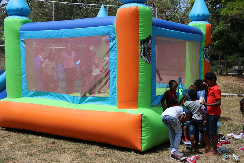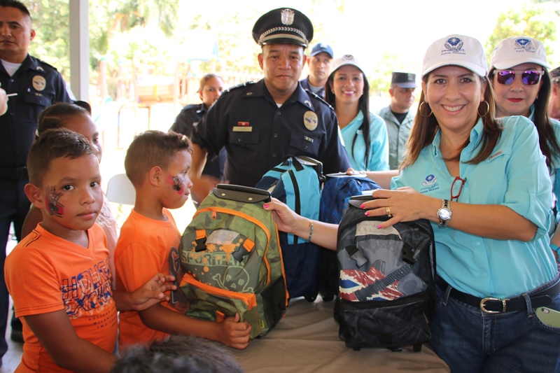 Hijos de miembros de la Policía Nacional y niños provenientes de las comunidades de Chepo, Colón, Guna Nega y El Harino de Capira en Panamá Oeste recibieron mochilas con útiles escolares, zapatos y uniformes en una actividad realizada este sábado 4 de marzo para despedir las vacaciones de verano, organizada por Las Damas A.S.U.L. (Armonía, solidaridad, Unidad y Lealtad) y la Dirección Nacional de Bienestar Policial y Familiar. Esta actividad que se desarrolló en el Parque Mango, ubicado en el sector de Balboa del corregimiento de Ancón, ofreció a este grupo de niños y niñas un momento agradable en el que disfrutaron de las destrezas de los canes de la Unidad Canina de la Policía Nacional, a la vez que conocieron algunos tipos de razas y la labor que realizan en la institución. Además se divirtieron en la tirolina, el brinca brinca, los juegos que ofrece el parque, degustaron deliciosos hot dogs, palomitas de maíz, dulces, bebidas y rompieron dos piñatas. Algunos lucieron divertidos dibujos hechos por las manos de las “pinta caritas”. La presidenta de Las Damas A.S.U.L, Nacellis Ulloa de Pinzón dijo que esta entrega de artículos escolares es un aporte a la educación de estos pequeños que provienen de familias humildes; a la vez que se compartió con ellos un día recreativo al aire libre para culminar con alegría las vacaciones escolares, siendo un incentivo para ellos. “Ayudar en hacer feliz a otros y brindarles la mano cuando más se nos necesite, es la motivación que nos impulsa a continuar llevando adelante nuestra labor social a beneficio de los miembros de la Policía Nacional y de la comunidad”, destacó Ulloa de Pinzón. A final, todos los niños muy contentos expresaron su alegría de la mejor manera, con abrazos y sonrisas, prometiendo estudiar mucho y seguir los consejos que este grupo de damas les brindaron para tener un año escolar exitoso.