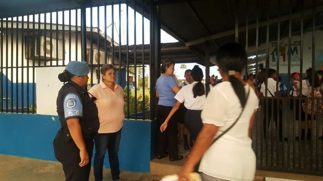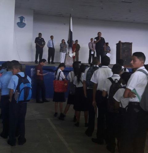 La Policía Nacional participa en los actos cívicos en varios Centros Educativos de la provincia de Chiriquí, por el inicio al año escolar 2017. En el acto protocolar estuvo presente el Gobernador de la provincia de Chiriquí, Licenciado Hugo Méndez, el Comisionado Eric Javier Amaya Sánchez, Jefe de la 4ta. Zona Policial de Chiriquí, la Licenciada Maritza Dean, Directora Regional del MITRADEL Chiriquí, el Director Regional de Educación de la provincia de Chiriquí, profesor Darmando Ríos entre otros. El Jefe de la 4ta. Zona Policial de Chiriquí, Comisionado Eric Amaya, afirmó que la Policía Nacional mantendrá un grado de supervisión periódica en los planteles como en horas diurnas y nocturnas, para cuidar los valores que tienen los centros educativos ya que son propiedad del Estados y le pertenecen a todos. "Para prevenir y evitar que se den situaciones de riesgo, se tendrá una comunicación directa con los celadores de los colegios y escuelas de la provincia, para tener un ambiente seguro para todos los estudiantes, docentes y administrativos", agregó el Jefe de Zona. Se ubicaran diariamente unidades policiales del tránsito, regulares en las vías principales en las escuelas y colegios. Además se contará con la presencia de los agentes uniformados de la Policía de Niñez y Adolescencia, quienes cuentan con programas de Desarrollos Humanos con el fin de orientar a los jóvenes, acotó el Comisionado Amaya. Por otro lado, el Ejecutivo de la 4ta. Zona Policial de Chiriquí, Comisionado Teófilo Moreno, asistió en horas de la mañana al acto cívico del Colegio Félix Olivares Contreras del distrito de David, el Comisionado Arquímedes Vargas, encargado del Área "B" de Barú, fue al Colegio Morazán de la Ciudad de David en horas de la tarde y el Sub-Comisionado Alejandro Urriola, encargado del Área "C" participó al Colegio Daniel Octavio Crespo de la ciudad de la Concepción de Bugaba. La Profesora Denis Jiménez, Directora de la Escuela de Lassonde, agradeció la presencia del señor Gobernador de la provincia de Chiriquí, a los directores gubernamentales, padres de familias y miembros de la Comunidad Educativa por estar hoy en este Centro Escolar. |