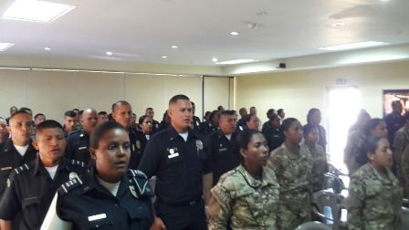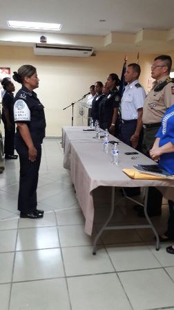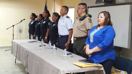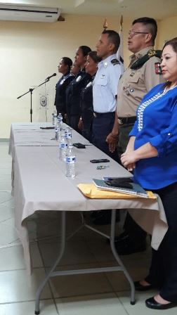 La Policía Nacional continúa capacitándose para velar por el crecimiento integral de nuestra niñez, desde el pasado lunes 13 de marzo hasta 7 de abril, las unidades del Servicio de Policía de Niñez y Adolescencia participan en el curso “Gestión en la atención y protección de la niñez y adolescencia” Dicho curso se desarrolla en el Campus Policial de Gamboa y está conformado por 63 estudiantes, de estos son 8 del Servicio Nacional de Fronteras, 16 del Servicio Nacional Aeronaval y 39 pertenecen al Servicio de Policía de Niñez y Adolescencia de la Policía Nacional. Entre los temas tratados son: Procedimientos de niñez y adolescencia apegada a las normativas nacionales e internacionales, Ley 3 del código de la Familia y el menor, Ley 40, del régimen especial de responsabilidad penal juvenil y Psicología de niños (as), adolescente y su conducta Los temas desarrollados son impartidos por funcionarios del Juzgado de Niñez y Adolescencia, La Fiscalía de Niñez y Adolescencia, Secretaria Nacional de Niñez, Adolescencia y Familia y CONAPREDES. En esta capacitación también participan unidades del Servicio Nacional Aeronaval y del Servicio Nacional de Fronteras. |