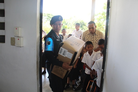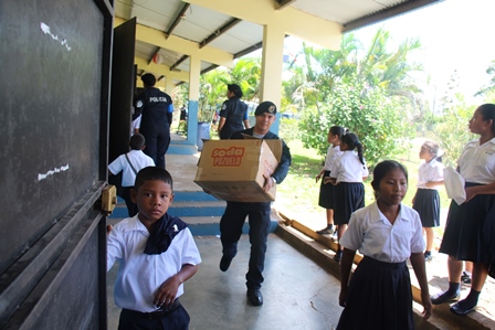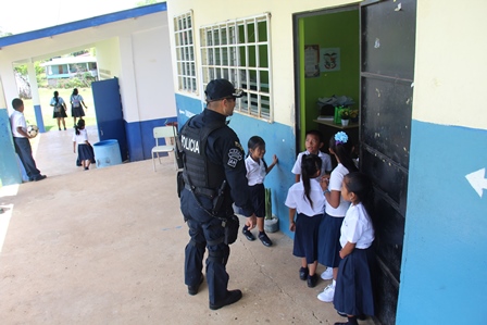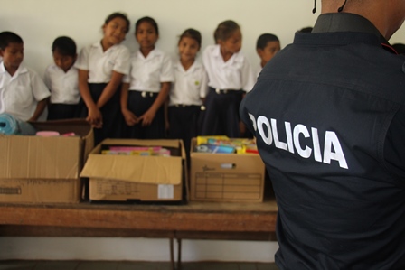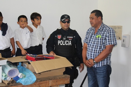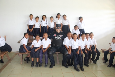 Con aplausos y un discurso de bienvenida, recibieron los niños de la escuela La Colorada en el distrito de La Chorrera a las unidades de la Policía Nacional de servicio en el Grupo de Apoyo al Servicio (GAS) quienes llevaron útiles escolares a estos humildes estudiantes. Se trata de niños humildes carentes de recursos para comprar sus útiles escolares, por lo que los unidades de este servicio de la Policía Nacional se hicieron eco de estas necesidades. “Estamos felices de ayudar a estos estudiantes quienes son el futuro de nuestra patria, nosotros aparte de brindar seguridad y protección tenemos el compromiso de estar allí al lado de quienes nos necesitan” destacó el Mayor Santiago Villamonte jefe encargado del GAS. Los niños estrecharon las manos de las uniformados, felices por los útiles donados y que de seguro le ayudarán en sus tareas diarias. El Director de la escuela, el maestro Elias Mendieta agradeció a las unidades policiales haber llegado hasta esta escuela y entregarles estos útiles escolares. “Gracias a la Policía Nacional por esta acción tan noble, esto incentiva a nuestros niños a seguir estudiando, a seguir siendo buenos estudiantes y apartarlos de los malos vicios” destacó. Las unidades compartieron un almuerzo con los niños, agradeciendo a los educadores y estudiantes por el calurosa bienvenida. |