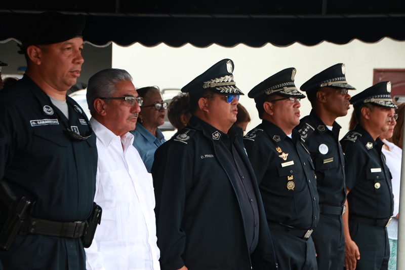“Dentro de las instituciones se realizan cambios, que representan el fortalecimiento de quienes trabajan de manera conjunta con la comunidad, lo que ha caracterizado a la Policía Nacional” expresó el Director General de la Policía Nacional, Omar Ariel Pinzón durante la ceremonia de cambios de mando en la Zona Policial de Panamá Oeste y la Unidad de Control de Multitudes (UCM). El Director General Pinzón, dio la bienvenida al Comisionado Víctor Olmedo que estará a cargo de brindar seguridad a los habitantes del distrito de La Chorrera en reemplazo del Comisionado Gilberto Samaniego quien ahora estará al mando de la Unidad de Control de Multitudes, relevando al Comisionado Benjamín Zambrano. El Jefe Policial, estuvo presente en ambas ceremonias, donde hizo entrega del banderín de mando, al Comisionado Víctor Olmedo, jefe entrante de la 10maZona de Policía y al Comisionado Gilberto Samaniego, nuevo jefe de la UCM. Pinzón, reconoció el desempeño y dedicación realizado por ambos Comisionados, durante su gestión en la que hizo un llamado a sus sucesores para que continúen con los planes de seguridad en beneficio de los ciudadanos. Los actos de cambio de mando estuvieron bajo la bendición de Dios, por el Capellán de la Institución Edgar Flores, que pidió en oración para que nuestro padre guiara y encaminara a los jefes entrantes en sus respectivas aéreas de responsabilidad. Además estuvieron presentes directores de entidades gubernamentales y no gubernamentales, autoridades distritales e invitados especiales. Al finalizar ambas ceremonia las unidades, hicieron entrega de obsequios al Comisionado Samaniego y al Comisionado Sambrano, por su destacada labor como jefes dentro de su zona y dependencia.