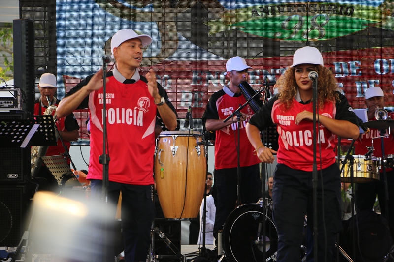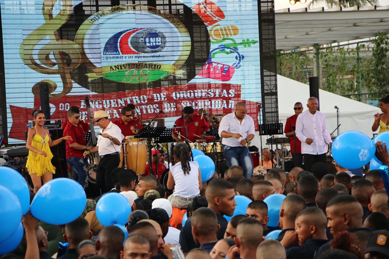La Orquesta Mayor de la Policía Nacional se quedó con el segundo lugar en un reñido encuentro de orquestas de los estamentos de seguridad, realizado este domingo 26 de marzo de 2017, en el Mirador del Pacifico de la Cinta Costera, celebrando el aniversario de la Lotería Nacional de Beneficencia. La orquesta del Servicio de Protección Institucional (SPI) resultó ganadora en este eventó donde también participaron el Servicio Nacional de Fronteras (SENAFRONT), Servicio Nacional Aeronaval (SENAN), la Policía Nacional y por primera vez la presentación del Cuerpo de Bomberos de Panamá. Las orquestas interpretaron una serie de ritmos, canciones y mucha energía, con géneros como salsa, regué, merengue y el típico siendo del gusto de los presentes quienes no dejaban de gritar y cantar. Luego de cuatro interpretaciones por los integrantes de estas orquestas de los estamentos de seguridad, el jurado evalúo la presentación, el acoplamiento, afinación y expresividad de cada orquesta, con puntajes que iban del uno al cinco. Grandes y chicos se dieron cita y deleitaron con la participación de las diferentes orquestas, en este encuentro en el que la Policía Nacional dice presente, dando todo lo mejor de sí, para que las familias panameñas disfruten de un gran espectáculo. Miembros juramentado y no juramentado de la institución, participaron de la actividad organizada por la Lotería Nacional de Beneficencia para conmemorar su 98vo aniversario. |