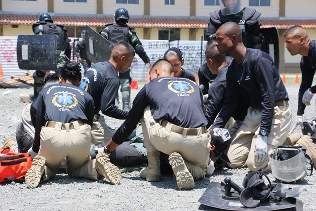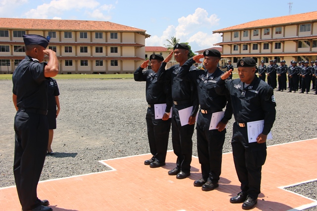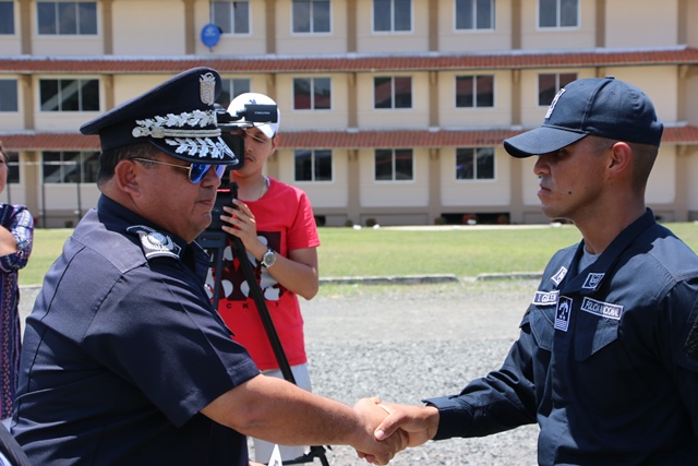 “La Ciudadanía en la calle quiere respuestas, pero eso solo se brinda siendo profesionales por tal motivo ustedes se están formando con un carácter fuerte, con un alto espíritu de vocación y sobre todo con una moral integral, una moral espiritual y con una visión de a largo plazo, ustedes son el relevo de los oficiales que les he traído hoy aquí” fueron las palabras del Director General de la Policía Nacional Omar Ariel Pinzón Marín, durante un acto de graduación de cursos en la Escuela de Oficiales Dr. Justo Arosemena. Cadetes de primer, segundo y tercer año, además de alféreces de cuarto año, se graduaron satisfactoriamente de cursos de Tácticas Policiales, Protección a Persona Muy Importante, Unidad de Control de Multitudes y primeros auxilios. El Comisionado Julio Jean Luis, Director de la Escuela de Oficiales de la Policía Dr. Justo Arosemena destacó que la realización de estos cursos y disciplinas buscan contribuir a la profesionalización integral del futuro Subteniente de la Policía Nacional, en aras de fortalecer las competencias específicas y atender las necesidades del servicio policial. El Director General de la Policía Nacional Omar Pinzón, junto a la Gobernadora de la Provincia de Colón y miembros del Directorio Policial, entregaron los certificados a los graduandos. También se entregaron obsequios y certificados de reconocimiento a los Alféreces y Cadetes que ocuparon los primeros puestos de cada curso. Además se entregó reconocimientos a los Instructores de los distintos cursos. En este período de capacitación los estudiantes mantenían desarrollo teórico- práctico los cuales le permitieron poner a prueba sus habilidades y capacidades en esta ceremonia de graduación.