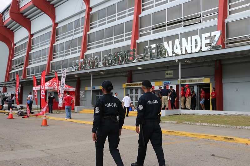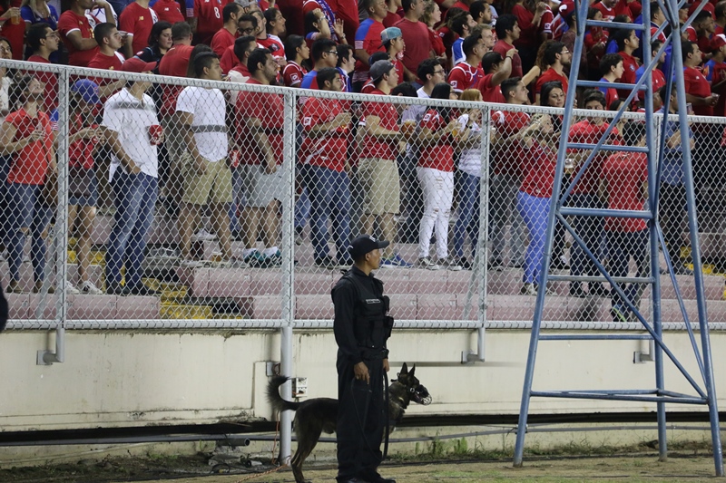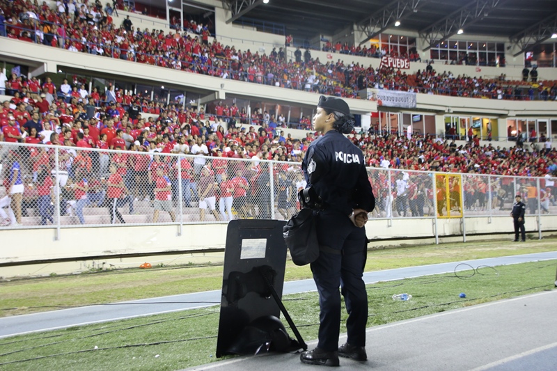 Unas 1,220 unidades de la Policía Nacional brindaron la seguridad a los panameños y extranjeros que asistieron este martes 28 de marzo al Estadio Rommel Fernández y disfrutaron del encuentro de fútbol de Panamá vs Estados Unidos. El Director General de la Policía Nacional, Omar Ariel Pinzón Marín acompañado por miembros del directorio y jefes de los servicios policiales, supervisó el trabajo de prevención que se realizó dentro y fuera de las instalaciones de este campo deportivo, donde se evitó el ingreso de objetos punzo cortantes, de vidrio y otros artículos, como parte de las recomendaciones de seguridad. “La Policía Nacional realiza en este tipo de eventos una planificación y coordinación previa para garantizar la sana convivencia y que todos disfruten de la fiesta del fútbol”, dijo Pinzón Marín. Participaron unidades de diferentes dependencias policiales como el Servicio Motorizado “Linces”, Grupo de Apoyo al Servicio (G.A.S.), Unidad de Control de Multitudes (UCM), además de miembros de otras entidades de seguridad, quienes brindaron su apoyo. También la Policía Nacional a través de la Dirección Nacional de Operaciones de Tránsito implementó un operativo en las vías y semáforos próximos al estadio, lo que permitió el flujo vehicular. De esta manera los fanáticos, sin ningún tipo de inconvenientes vieron a la selección empatar 1-1 con su similar de Estados Unidos en un reñido partido que le da cinco puntos a Panamá y mantenerse en la zona clasificatoria para el Mundial de Rusia 2018.