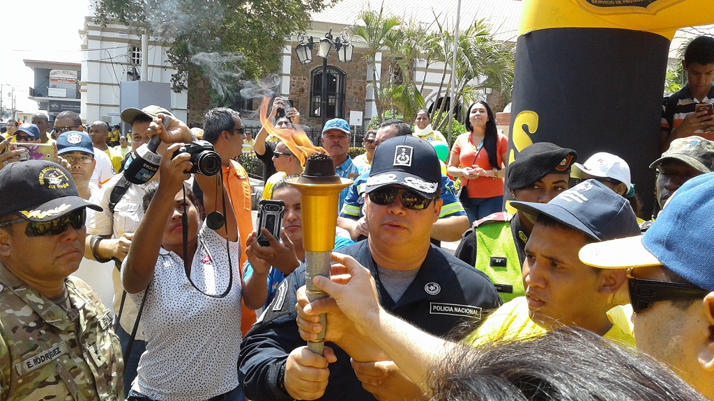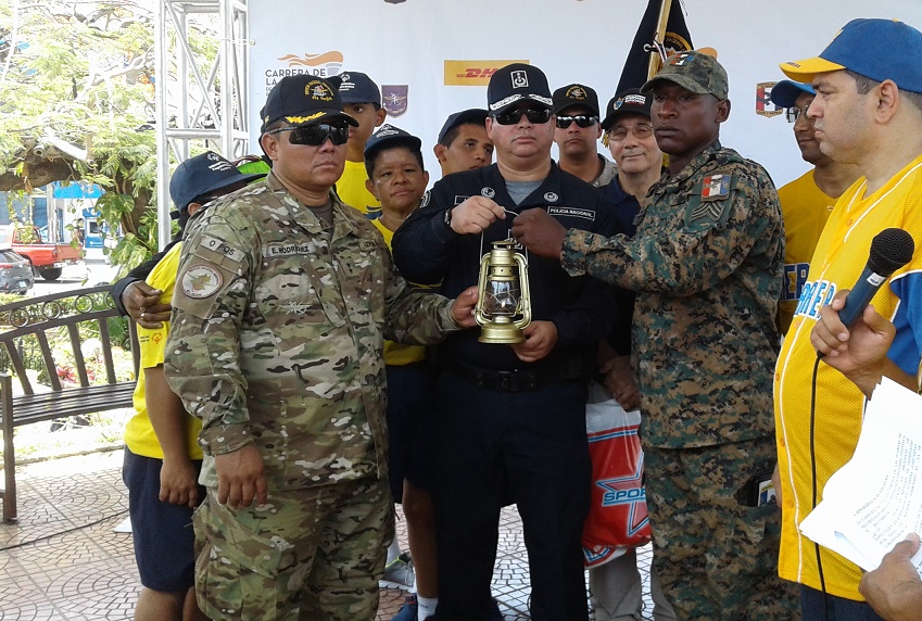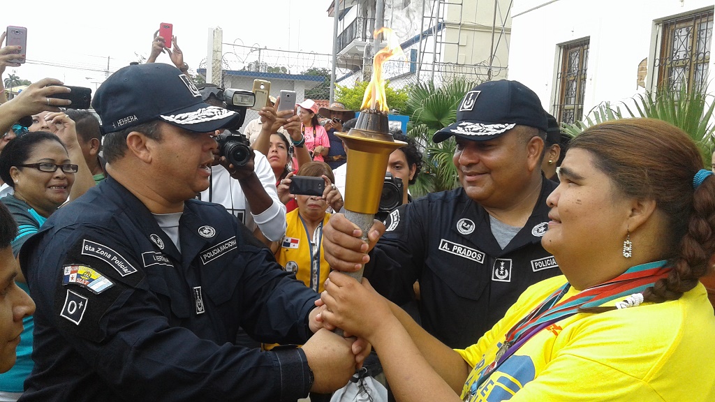La antorcha de las Olimpiadas Especiales llegó este fin de semana a la provincia de Herrera. Unidades policiales y miembros no juramentados de la Sexta Zona Policial, realizaron el recorrido por las principales calles de Chitré en compañía de los atletas. El comisionado Ismael Herrera Delgado, jefe de la Zona de Policía de Herrera, recibió la antorcha de manos del comisionado Frank Pinilla, jefe de la Zona de Policía de Los Santos. En el acto de entrega que se llevó a cabo en el parque Unión de Chitré, estuvo presente el Doctor Raúl Rivera, gobernador de la Provincia de Herrera y demás autoridades. Como Institución de Seguridad Pública reafirmamos nuestro compromiso y respaldo incondicional a nuestros atletas de las Olimpiadas Especiales 2017. La actividad no paró aquí, porque a tempranas horas del pasado domingo, el Jefe Policial de Herrera, comisionado Ismael Herrera acompañados por unidades policiales se trasladó hasta la hermana provincia de Coclé, a realizar la entrega de la antorcha al comisionado Aníbal Prado; jefe de la Zona de Policía de Coclé. |