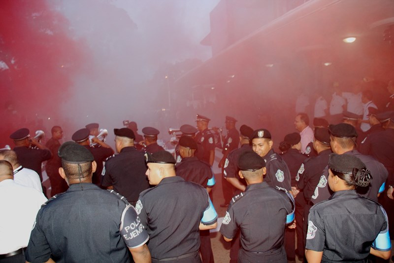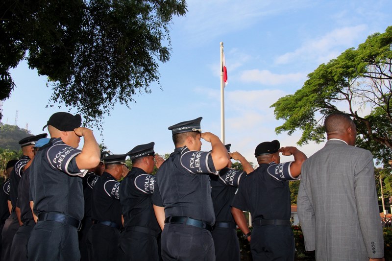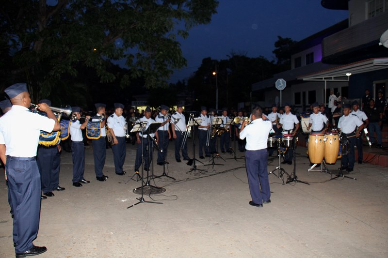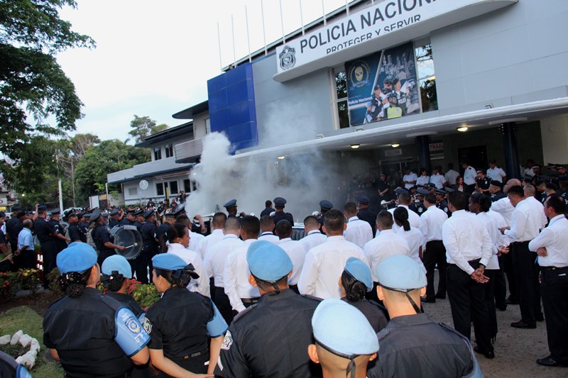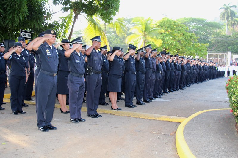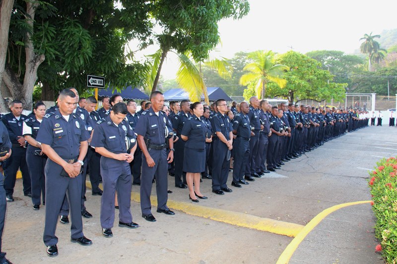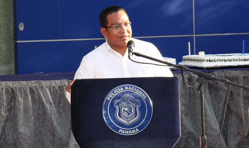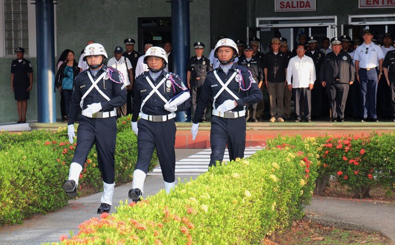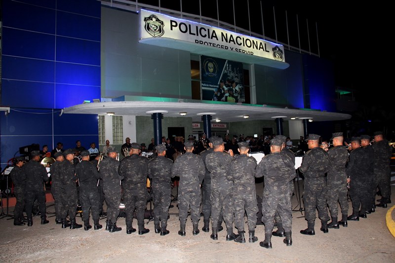 La celebración del 80 aniversario del “Día del Policía”, continuaron este lunes 3 de abril en nuestra sede de Ancón, con las contagiosas dianas interpretadas por las bandas de la Policía Nacional, Servicio Nacional de Fronteras, Servicio Nacional Aeronaval y del Servicio de Protección Institucional. Todos festejaron. Unidades policiales, personal no juramentado e invitados especiales, se deleitaron con cada interpretación. Todo empezó a eso de las 5:00 a.m. Y reafirmando nuestro compromiso de seguir protegiendo y sirviendo al país, realizamos el acto cívico, donde la invocación religiosa estuvo a cargo el capellán de la Institución Edgar Flores. Además se procedió a colocar las ofrendas florales al monumento de los caídos, en honor de aquellos uniformados que perdieron la vida en el cumplimiento del deber. “Cada año… como Día del Policía, se rinde homenaje a la labor abnegada y sacrificada que realizan los hombres y mujeres que orgullosamente integran esta noble Institución que tiene la responsabilidad de garantizar la paz y la seguridad de los habitantes de esta patria panameña”, dijo durante el acto el Director General de la Policía Nacional, Omar Ariel Pinzón Marín. En cuanto a los aspirantes a Policía Ejemplar, el Director General destacó que ellos son digno de imitar porque han dibujado su huella imborrable al honrar a la Patria y a los compromiso que una vez juraron cumplir al pie de la letra, porque han trabajado con integridad, transparencia, vocación y modelo para las futuras generaciones de policías. Seguido el Director acompañado por el Secretario General del Ministerio de Seguridad Pública, Aron Pérez; Director del Servicio Nacional de Fronteras Cristian Hayer; el Director del Servicio Nacional Aeronaval, Belsio González; miembros del Directorio Policial e invitados especiales, se cantó el “feliz cumpleaños”.