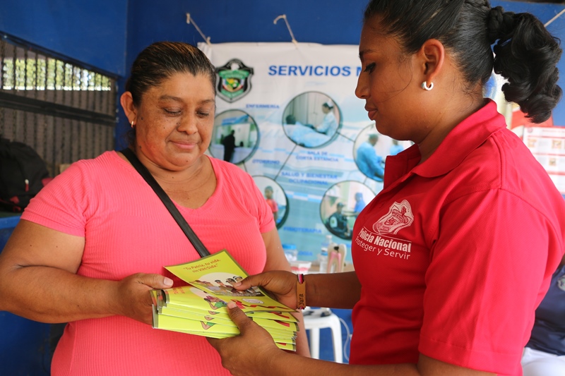 Uniformados y personal no juramentado de la Policía Nacional junto a sus familiares y residentes de varias comunidades disfrutaron este sábado 8 de abril, un día ameno durante la Feria Institucional realizada en el marco de la celebración del 80 aniversario del “Día del Policía”. El Director General de la Policía Nacional, Omar Ariel Pinzón Marín acompañado por el Secretario General del Ministerio de Seguridad, Aarón Pérez, recorrió la feria y compartió con niños y adultos. “Dedicamos este día a los hombres y mujeres de uniforme, que día a día salen a las calles a cumplir su misión de brindar seguridad, a la vez agradecerles por su dedicada labor por el bienestar de la comunidad”, dijo Pinzón Marín. En esta actividad que por segundo año se realizó en los terrenos de la Feria Internacional de Azuero, ubicada en la provincia de Los Santos, se ofreció para recreación de todos juegos, premios, artesanías y otros productos autóctonos del país. Las zonas y dependencias policiales mostraron en los stands parte de las manifestaciones culturales y folklóricas de cada región del país, desde bailes típicos, la gastronomía, postres y vestuarios. También se orientó a los asistentes sobre medidas de seguridad y se destacó la labor de prevención que realiza la institución. Así mismo, se presentaron en tarima artistas nacionales y las orquestas de música de la Policía Nacional y demás estamentos de seguridad que deleitaron al público en general. Los participantes de “Policía Ejemplar”, también aprovecharon para darse a conocer y promocionar este importante evento que se tiene previsto el próximo miércoles 26 de abril para cerrar con broche de oro la celebración del “Día del Policía”. La feria institucional como parte de esta celebración, se ha convertido en un medio ameno para estrechar los lazos de la familia policial, reafirmar el orgullo de ser miembros de la institución y resaltar valores.