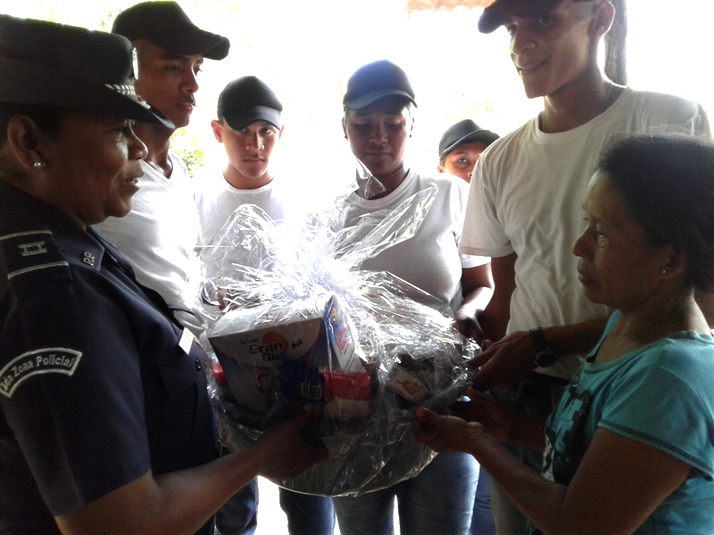 Unidades de la Policía Nacional de servicio en el Departamento de Reclutamiento de la 2da Zona Policial, conjuntamente con jóvenes aspirantes a la Institución, se trasladaron a la comunidad de Bella Vista en Penonomé, donde visitaron a una familia humilde, a quien le hicieron entrega de una canasta de víveres. La señora Rosa Mendoza de 48 años, estaba contenta por la sorpresa que le había llevado la Policía. Se trata de una humilde que vive sola con sus niñas y que depende de los sombreros de paja que confecciona con sus manos y luego lleva a vender a Penonomé. "No hay palabras para agradecerles esta ayuda que nos han traído, le pido a Dios que los bendiga por ser tan humanitarios, gracias señores de la Policía" fueron las palabras de la señora Mendoza al recibir la ayuda. Por su parte la Teniente Yasmina Bethancourth, encargada del departamento de reclutamiento, manifestaba que esta gran labor la continuaran realizando en beneficio de las comunidades.