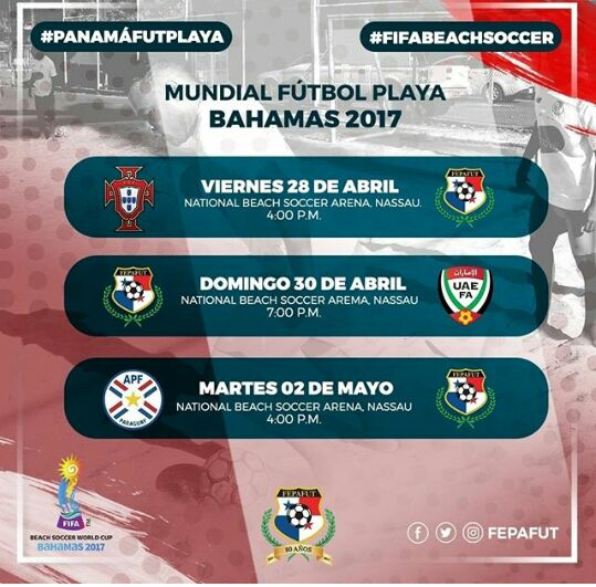 “Como equipo nos hemos preparado fuertemente, para este mundial del Futbol de Playa, en cada entrenamiento nuestro director nos exige, estamos positivos a que le ganaremos nuestro primer rival Portugal”, indicó el Cabo segundo Julio Watson, de la Policía Nacional, quien se encuentra con su equipo, la Selección Nacional de Futbol Playa de Panamá. El equipo canalero realizó su último entrenamiento en Nassau, Bahamas con horario de 7: 00 a.m a 12:00 p.m, fortaleciendo su acondicionamiento físico y mejorando sus técnicas. Este viernes 28 de abril, nuestra Selección Nacional de Futbol de Playa, se mide ante el equipo de Portugal, actual campeón mundial de futbol de playa, en Las Bahamas, en el National Beach Soccer Afena. La Policía Nacional siempre apoyando el deporte, les desea buena suerte a la Selección Panameña en este mundial.