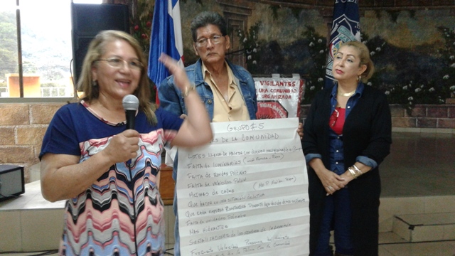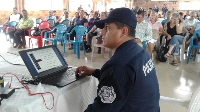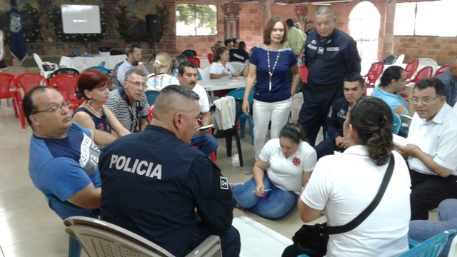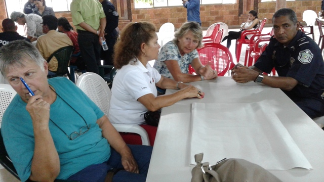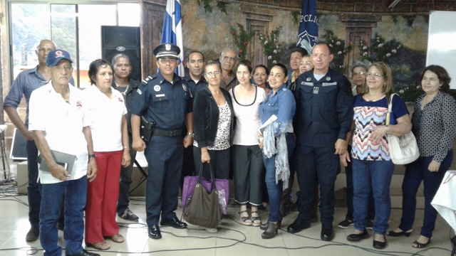 Unidades de la 4ta. Zona Policial de Chiriquí, realizaron un Taller de Gestión Local o Planeamiento Situacional de Seguridad Ciudadana con los miembros del programa de Vecinos Vigilantes del distrito de Boquete. Este Taller se desarrolló en el Salón Arco Iris de la Feria de las Flores y del Café, con la finalidad de crear conciencia en las diferentes comunidades para prevenir los hurtos y robos; a la vez saber cómo dar aviso a las autoridades al momento que acontezca una situación de emergencia. Se contó con la presencia del Comisionado Teófilo Moreno, Ejecutivo de esta Zona Policial, el Licenciado Espinoza Brown, en representación del Alcalde de Boquete, el Capitán Roberto Espinoza, encargado del Área “A” Boquete, el Teniente Lucinio Miranda, encargado del Departamento de Seguridad Ciudadana, el Teniente Omar Espinoza del distrito de Dolega y la Licenciada Yaneth Sánchez, Presidenta Provincial de Vecinos Vigilantes. La actividad inicio con la invocación religiosa a cargo del Señor Plinio Ruíz, del Grupo de Vecinos Vigilantes de Alto Lino, mientras que las palabras de bienvenidas las dio el Comisionado Moreno, quien agradeció la participación de todos a este importante taller. Igualmente, el Ejecutivo de la 4ta. Zona Policial fue el instructor en este taller, quien habló sobre las Estrategias de Prevención y del Plan de Trabajo que se tiene con las Autoridades y otras Instituciones Gubernamentales. “La Policía Nacional está buscando fórmulas para tener un estrecho lazo entre la sociedad”, acotó el Comisionado Moreno. Entre tanto, se formaron varios grupos de trabajos, donde cada uno ordenaron las necesidades que tienen en sus comunidades para luego exponerlas. El Licenciado Brown, les dio las gracias a la Policía Nacional y a la vez los felicitó por haber organizado este taller que es de suma importancia para la comunidad.