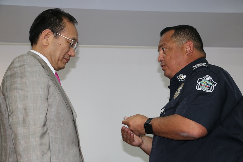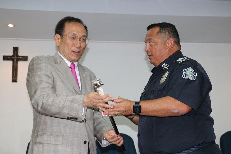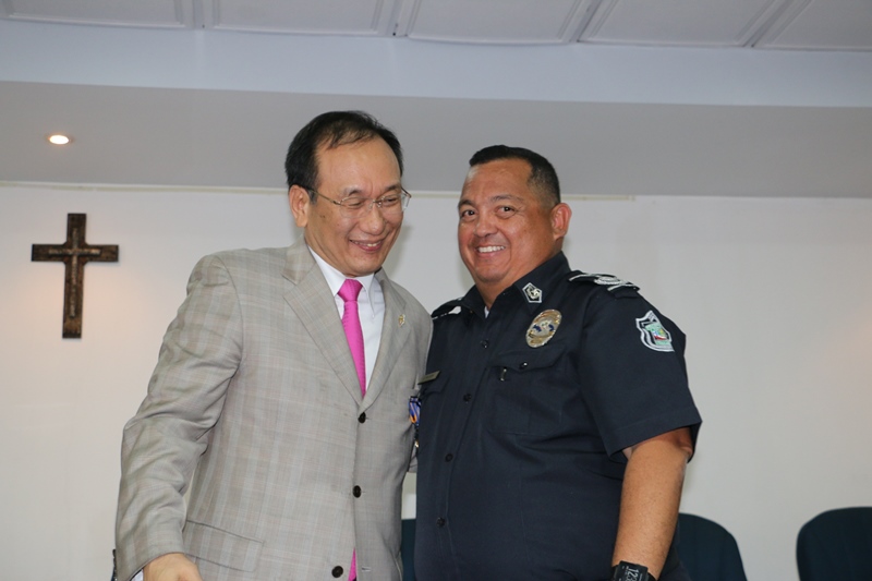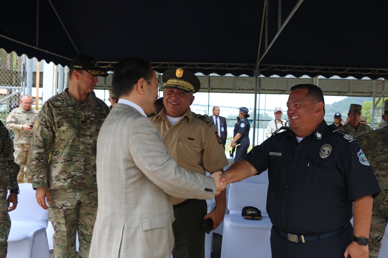 El Director General de la Policía Nacional Omar Ariel Pinzón Marín, entregó un reconocimiento al Embajador de China (Taiwán) José María Liu, colocándole la medalla Policía Nacional y obsequiando un Espadín, como muestra de agradecimiento por la colaboración a esta primera Institución de Seguridad. “No existen palabras para expresar mi gratitud, con los diplomáticos de la Embajada de China (Taiwán) en Panamá, por todo el apoyo brindado a la Policía Nacional, un acto que estrecha la relación de amistad entre ambos países”, expresó Omar Pinzón jefe de esta institución. Este reconocimiento se llevó a cabo en la sede principal del Servicio Nacional Aeronaval, ubicada en Howard, en medio de la ceremonia de entrega de dos lanchas de interdicción, DAMEN, al Director General del Servicio Nacional Aeronaval, Belsio González. En el acto también participó el Ministro de Seguridad Pública Alexis Bethancourt Yao, el director del Servicio Nacional de Fronteras, Cristian Hayer, miembros del directorio del Servicio Nacional de Fronteras e invitados especiales que junto a los Diplomáticos realizaron un recorrido por la Bahía Panameña para observar el funcionamiento de las lanchas donadas. José María Liu Embajador Taiwanés, está por concluir su labor como diplomático en nuestro país, ya que fue notificado que adquirirá el cargo de Viceministro de Relaciones Exteriores de China (Taiwán).