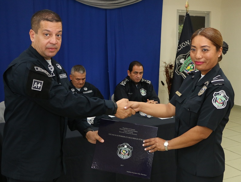 Un total de 92 unidades de las diferentes direcciones, zonas y dependencias culminaron con éxito el cuarto curso de homologación, obteniendo el título de “Técnico Superior en Seguridad Pública”, el cual se llevó a cabo en el Instituto Superior Policial ubicado en Gamboa. El Director Nacional de Docencia, comisionado Jorge Escobar destacó la importancia de la educación policial, lo cual promueve el desarrollo humano y profesional de la institución. “Cada unidad debe contar con los conocimientos requeridos para el desempeño de sus funciones y así garantizar la seguridad ciudadana en el país” señaló Escobar. Los estudiantes entre oficiales, clases y agentes recibieron por parte de los diferentes miembros del directorio y oficiales de la Dirección Nacional de Docencia, los certificados que los acreditan como Técnico Superior en Seguridad Pública. Este curso tuvo una duración de 100 horas de formación semipresencial, en donde se adquirieron las herramientas que fortalecen la profesión policial. Este evento estuvo presidido por el comisionado José Ríos, Director Nacional de Operaciones; comisionado Jorge Escobar, y el comisionado José Castillo, Director Nacional de Recursos Humanos de la Policía Nacional. La constante capacitación que lleva a cabo la Policía Nacional tiene como objetivo brindar a cada una de las unidades la oportunidad de superación y en pro de brindar un servicio eficaz a la población panameña.