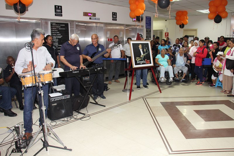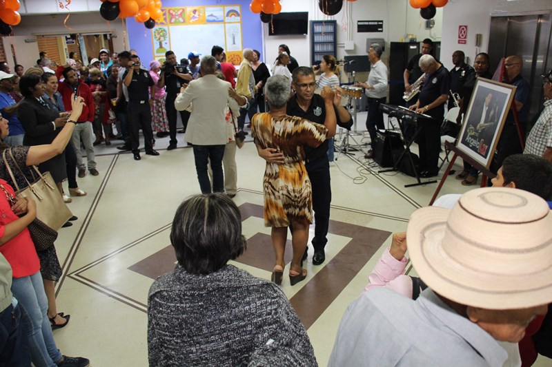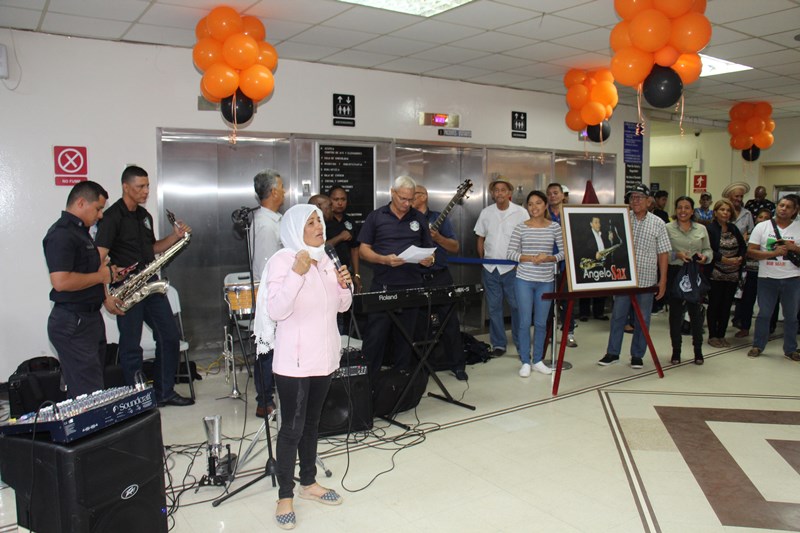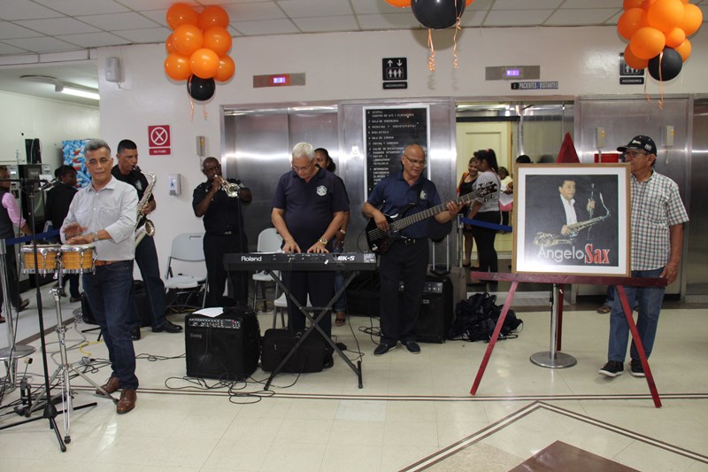 Una mañana llena de bailes, sonrisas y mucha música, pasaron los pacientes del Hospital Oncológico de Panamá, iniciativa de las unidades que integran la banda de música de la Policía Nacional de Panamá. En aquel nosocomio donde se le brinda atención a pacientes de cáncer, vibró la música de todo tipo que puso a bailar, cantar y sonreír a estos hombres y mujeres, así como a sus familiares. Compañeros, amigos y familiares del destacado músico panameño Ángelo Rodríguez, mejor conocido como “Ángelo Sax”, aprovecharon la ocasión para realizarle un homenaje a fin de recordarle a un año de su fallecimiento. El grupo voces y cuerdas de la Policía Nacional conformado por Capitán José Pimentel, el Teniente Juan Sossa, el Subteniente Bleixen Moreno, el Sargento 1ro. Eduardo Herrera y el Miembro No Juramentado Carlos Bernal se encargó de amenizar el evento. En el acto estuvieron presentes el Licenciado Eduardo Molina en representación del Director de la Policía Nacional Omar Pinzón así como el Dr. Aníbal Villarreal Director del Hospital Oncológico Nacional y el licenciado Iván Rodríguez del Departamento de Mercadeo de la Policía Nacional, así como personal médico y administrativo del Hospital Oncológico.