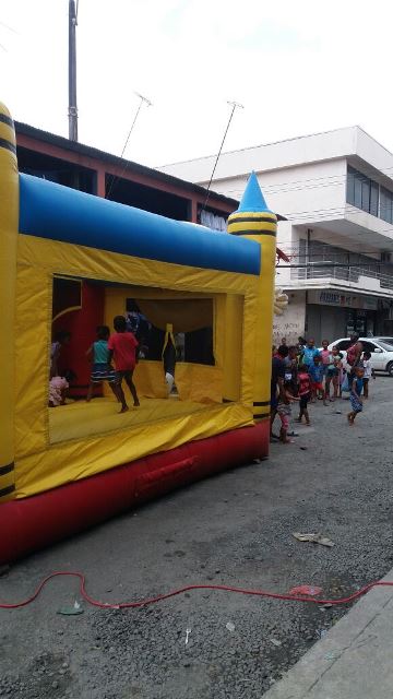 Unidades de la zona policial de Colón a través de la oficina de Seguridad Ciudadana comparte y lleva alegría a los niños que viven en la calle 13 entre las avenidas Justo Arosemena y Amador Guerrero. Las unidades llegaron brinca brinca y golosinas a la calle 13 en horas de la mañana del sábado 06 de mayo, sorprendiendo a los niños que viven en el sector que no dudaron en disfrutar de la actividad. En comisionado Benjamín Sambrano señaló que esta actividad se realizar en las diferentes calles de la ciudad y también en las barriadas para que los niños compartan con los policía y sepan que somos sus amigos y estamos para protegerlos. Sambrano, dijo que con estas actividades la policía busca acercarse a la comunidad y juntos mantener la convivencia pacífica en la provincia.