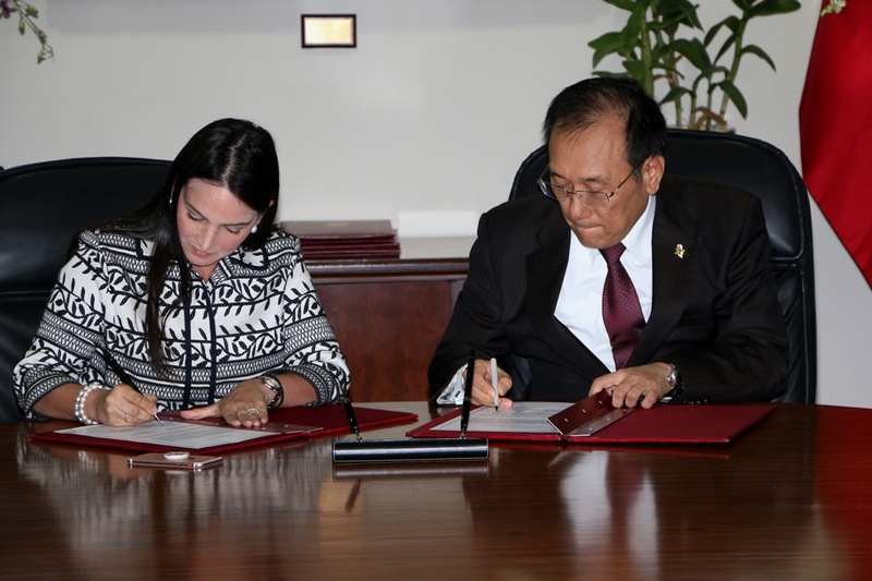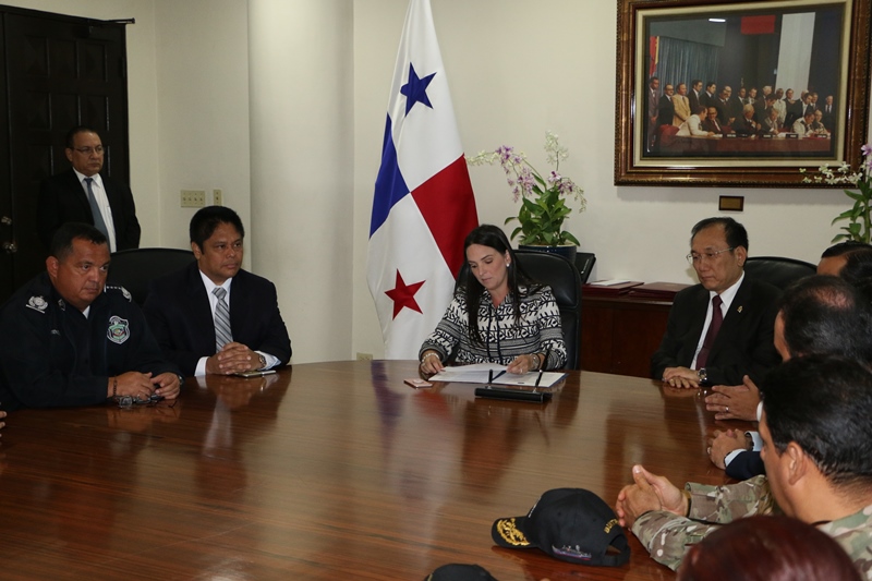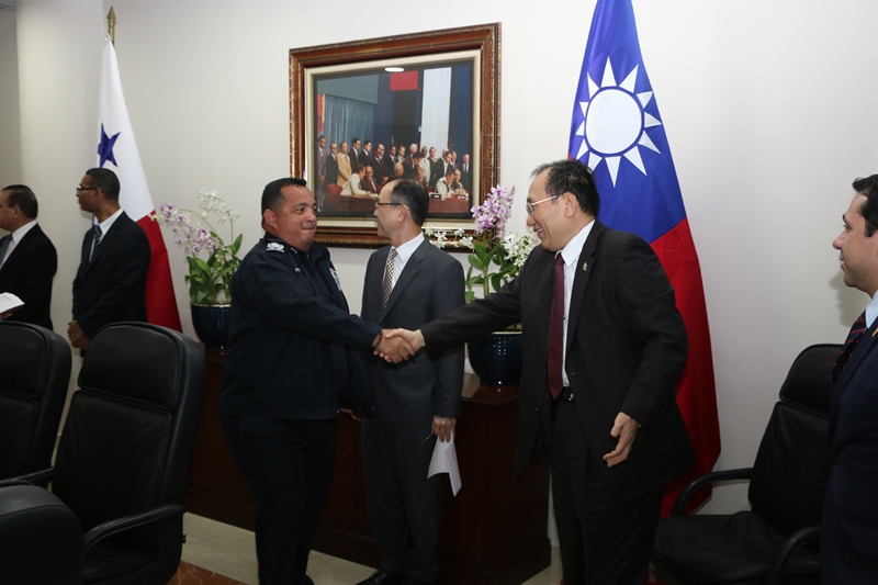 Para fortalecer el trabajo que realiza la Policía Nacional en la lucha contra la delincuencia y grupos criminales la Embajada de la República de China (Taiwán), donó 15 vehículos que serán destinados para la Sección Antipandillas de las zonas policiales de Chiriquí y Veraguas. Esta donación fue entregada por el señor José María Liu al Director General de la Policía Nacional, Omar Ariel Pinzón Marín, en un acto presidido por la Viceministra de Asuntos Multilaterales y Cooperación de la Cancillería, María Luisa Navarro realizado en el salón de los Próceres del Ministerio de Relaciones Exteriores. Igualmente participaron el Ministro de Seguridad Pública, Alexis Betancourt, Directores de los estamentos de Seguridad e invitados especiales. En el acto también se formalizó la donación de un microscopio electrónico de transmisión para el Instituto de Investigación Agropecuaria de Panamá (IDIAP). Además de la entrega de una lancha al Servicio Nacional Aeronaval, para patrullar las costas del país. Ana Luisa Navarro, Viceministra de Asuntos Multilaterales y Cooperación de Panamá, firmó las actas de entrega de estas donaciones con el Embajador de la República de China-Taiwán. |