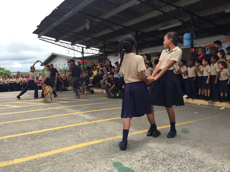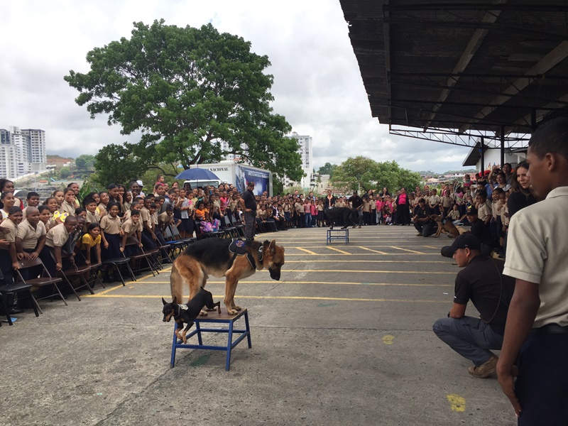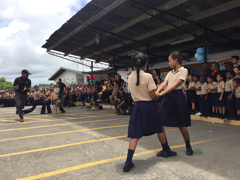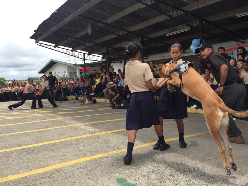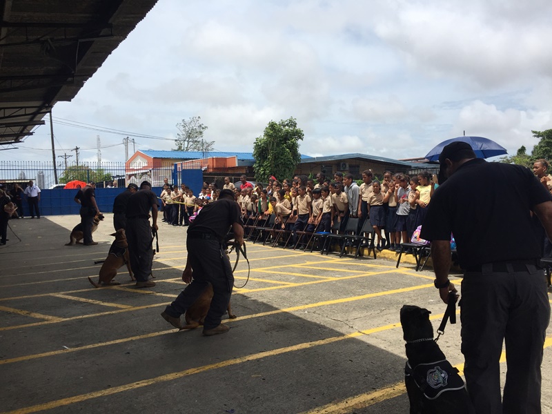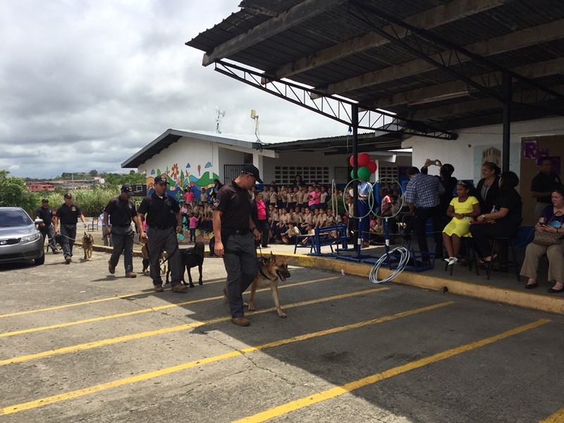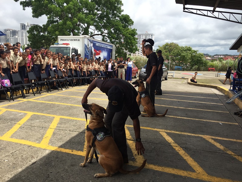 Unidades de la Policía Nacional en conjunto con las Naciones Unidas Contra la Droga y el Delito (UNODC) y la Autoridad Nacional de Transparencia y Acceso a la Información (ANTAI), participaron este martes 9 de mayo en un taller de valores para la educación primaria. Este programa es desarrollado por la Academia Regional Anticorrupción para Centroamérica y el caribe (ARAC), iniciativa conjunta con (UNODC) Y (ANTAI) a fin de promover un ambiente escolar caracterizado por la integridad, la honradez y la responsabilidad. La unidad canina (UCAN) de la Policía Nacional participaron e invitaron a los niños a realizar algunos ejercicios con los canes. Este programa dirigido a estudiantes de primer y segundo grado de la escuela primaria Carmen Sole Bosch ubicado en la san pedro #2 corregimiento de Juan Díaz, y tuvo una duración de 4 horas. También se contó con el apoyo del Departamento de Inspectoría General, cuyas unidades policiales fungen como oficiales de ética y han trabajado en este programa en ocasiones anteriores. |