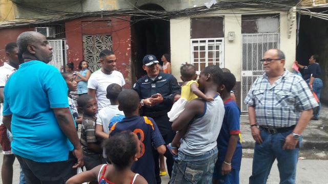El comisionado Benjamín Sambrano, jefe de la zona policial de Colón, en los contantes recorridos que realiza por la ciudad y por diferentes puntos de la provincia, en horas de la tarde del miércoles 10 de mayo, conversó con un grupo de jóvenes y niños que residen en la calle 12 avenida Domingo Díaz. Sambrano, invitó a los mismo a jugar fútbol en la cancha que se encuentra en las instalaciones policiales ya que estos se encontraban jugando fútbol en la calle, afectando el libre tránsito de los vehículos. El comisionado Sambrano manifestó que con este recorrido que realiza diariamente por las calles busca el acercamiento con la comunidad, y que desde el niño hasta el anciano vean en el policía un amigo.