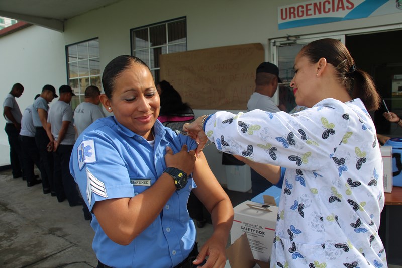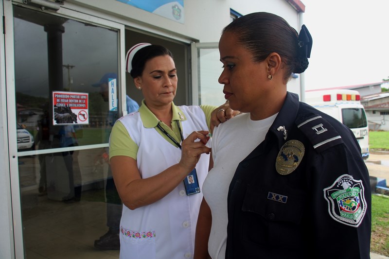 Hoy cuando celebramos el “Día de la Enfermera y Enfermero”, la Policía Nacional felicita a estos bien llamados “Ángeles blancos”. Esta profesión sinónimo de vocación, entrega y amor al prójimo que desempeñan esos hombres y mujeres dispuestos a dar un inigualable aporte al cuidado de la salud. En el Departamento de Servicios Médicos (Clínica) de la Policía Nacional, laboran cuatro enfermeras que velan por la salud y el cuidado de miembros juramentados y no juramentados. Una de ellas es María Elena Goicoechea, enfermera militar graduada de la Escuela de Enfermeras del Hospital Militar en Perú, quien lleva trabajando más de 8 años dentro de la Policía Nacional. “Mi labor la realizó con amor, bondad y mucha dedicación, participando en campañas de prevención del VIH, charlas preventivas, jornadas de vacunación, además encargada del bienestar de los Centros de Atención Integral a la Primera Infancia (CAIPI)” dijo. También encontramos a la Subteniente Amilka Artola, Ángela Madrid y Ada Camargo mujeres empeñadas a cuidar, atender y preservar la salud de nuestra institución. El Director Omar Ariel Pinzón y toda la Policía Nacional nos unimos a esta celebración deseando que el Dios todo poderoso siga bendiciendo a nuestros “Ángeles Blancos”.