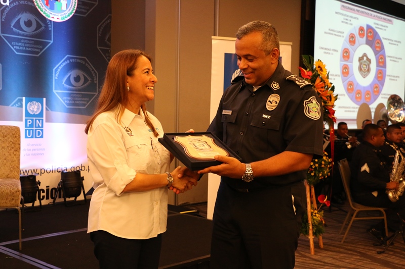 Más de 500 personas dirigentes de los diversos programas de seguridad ciudadana a nivel nacional, se hicieron presentes este sábado 20 de mayo en el Foro “Cambio de Cultura y Valores para mejorar la Seguridad Ciudadana”, organizado por la Policía Nacional, en un hotel de la localidad. El foro tuvo como objetivo fomentar la integración, participación e intercambio de información entre la población panameña y los estamentos de seguridad, para luchar contra la delincuencia y crear un ambiente adecuado para la convivencia pacífica. Para el Director General de la Policía Nacional, Omar Ariel Pinzón Marín este foro redunda en importancia para la Policía Nacional porque se interactúa con líderes comunitarios de todo el país, interesados en colaborar con la labor que lleva adelante esta institución de seguridad. “La implementación de nuestros programas preventivos en los diversos sectores y comercios, ha logrado brindar una respuesta rápida y eficaz ante los hechos delictivos mejorando así la calidad de vida de los ciudadanos” destacó el jefe policial. "Este Foro es de ustedes, símbolo de la alianza con la ciudadanía", dijo el DG. Resaltó que en lo que va del año, unos 30 mil estudiantes se han beneficiado de los programas preventivos de la Policía Nacional y que se hacen los esfuerzos para llevar los programas a otra regiones del país, por lo que es necesario que todos sean colaboren con la Policía Nacional. Este foro contó con la participación de expositores nacionales y extranjeros, entre estos el Sociólogo, Gustavo Leal, quien planteó estrategias de Convivencia y Seguridad en Contexto de Exclusión y Pobreza en Uruguay; el licenciado Freddy Miranda Castro quien hizo un análisis sobre la seguridad comunitaria en Costa Rica. También estuvo el pastor Iván Richards quien felicitó a las unidades de la Unidad Policía Comunitaria por garantizar la Convivencia Ciudadana en los diferentes barrios del país e igualmente, la licenciada Esthela Villarreal, quien conversó acerca de los beneficios que obtiene la sociedad al participar de este tipo de programas de prevención. Los integrantes a los programas de seguridad ciudadana aprovecharon la oportunidad para hacer preguntas a los expositores y al Director General de la primera institución de seguridad. Por su parte, el Director General de Docencia, Jorge Luis Escobar destacó el incremento de la presencia policial y equipos tecnológicos, como parte de las medidas preventivas de la Policía Nacional. “No puede haber seguridad en la comunidad si no hay comunicación entre autoridades, ciudadanos y la Policía”, Comisionado, Jorge Escobar. A cada uno de ellos se le fue otorgado un reconocimiento por su participación, los cuales fueron entregado por la comisionada Oris Jaén y el comisionado Rafael Álvarez, jefe del Departamento de Seguridad Ciudadana de la Policía Nacional. Se trata de un total de 12 programas preventivos, entre estos Vecinos Vigilantes, Comercios Vigilantes, Hoteles Vigilantes, Ganaderos Vigilantes, Alianza CAPASEP, los cuales han beneficiado a más de un millón de personas, entre nacionales y extranjeros.