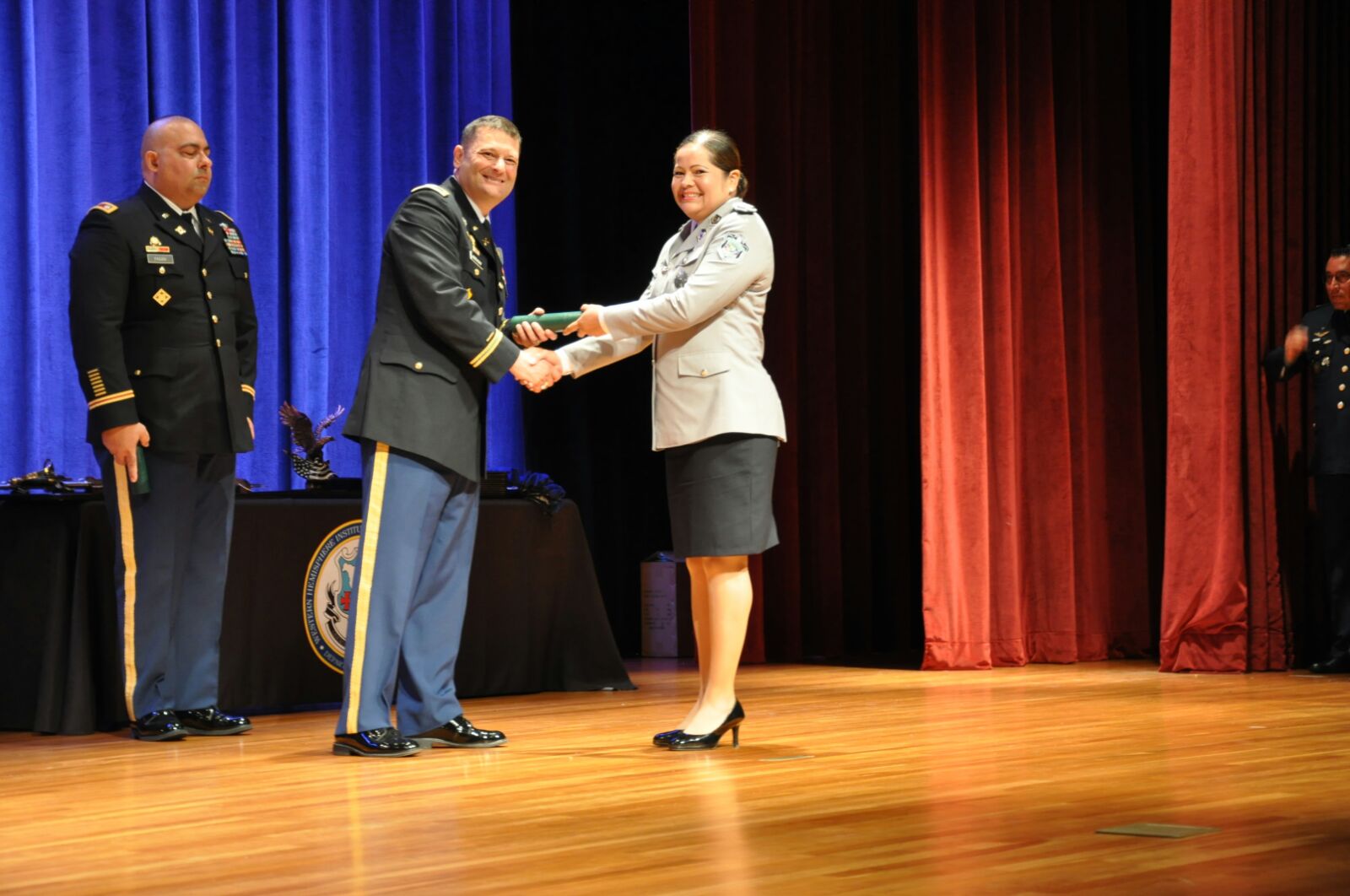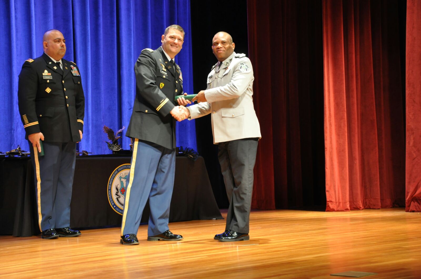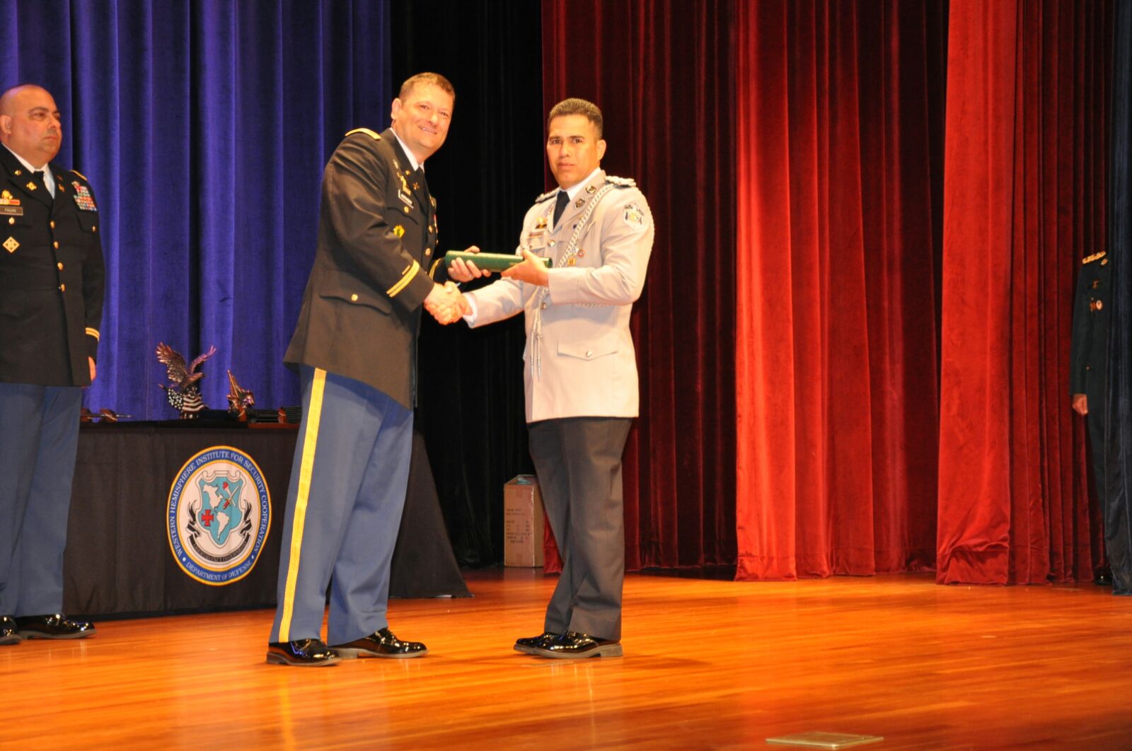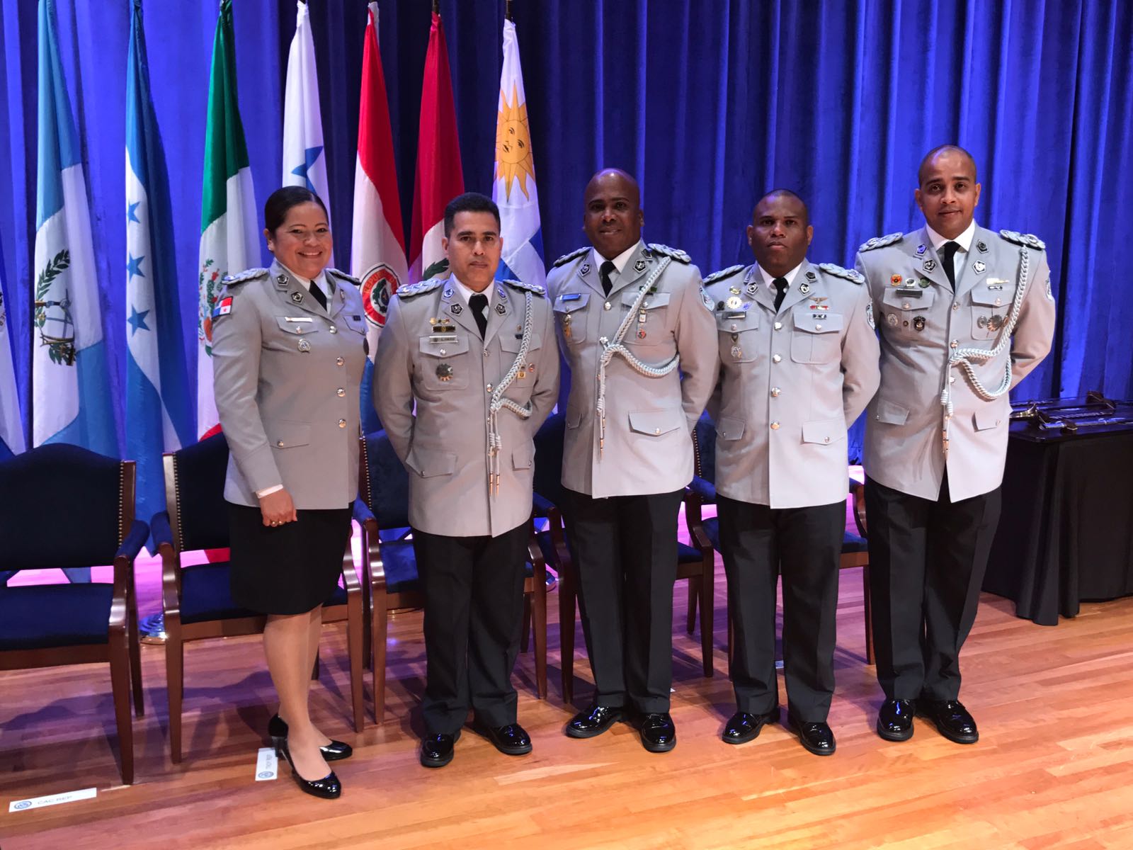 Satisfactoriamente, un grupo de cuatro oficiales panameños culminaron el curso de Comando Mayor y Estado Mayor en el Instituto del Hemisferio Occidental para la Cooperación en Seguridad, en Columbus, Georgia, Estados Unidos. El Comisionado Luis Ortiz, el Subcomisionado Luis García y los Mayores Luz Sánchez y Adolfo Pérez, quienes estuvieron por período de un año recibiendo capacitaciones en el Instituto de Cooperación para la Seguridad Hemisférica (WHINSEC, por sus siglas en inglés). Esta promoción está integrada por oficiales de campo del componente activo, la Reserva y la Guardia Nacional del Ejército de los EE. UU., la Marina la Fuerza Aérea y el Cuerpo de Infantería de Marina de los EE. UU., así como por oficiales de las fuerzas militares y policiales de Canadá, Colombia, Costa Rica, El Salvador, Guatemala, Honduras, México, Panamá, Paraguay, Perú, República Dominicana y Uruguay. En la ceremonia de graduación los oficiales estuvieron acompañados de sus familiares y del Comisionado Simón Henríquez, quien es instructor invitado en Whinsec. |