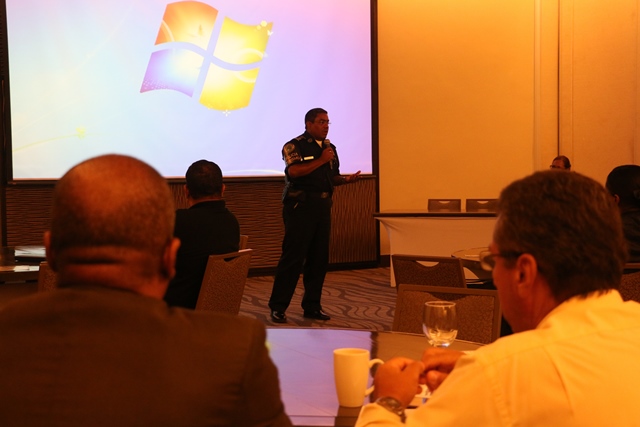 El Director General de la Policía Nacional, Omar Ariel Pinzón Marín se reunió este jueves 25 de mayo de 2017, con integrantes del programa Hoteles Vigilantes de la 8ava. Zona de Policía. El jefe policial instó a los presentes a ser más activos en estos programas e hizo énfasis en la utilización de las redes sociales por personas inescrupulosas que buscan impactar de manera negativa en la sociedad, creando pánico. “Para la Policía Nacional es importante que la ciudadanía se integre a estos programas de seguridad ciudadana, porque la seguridad del país es un asunto de todos” destacó. En el conversatorio abordaron diferentes temas entre ellos pandillerismo, como identificar a personas ligada a estos grupos, además se hizo énfasis en el papel que debe ejecutar el primer interviniente cuando se da un hecho e informar al Ministerio Publico. Entre los expositores estuvo la fiscal de Atención Primaria, Jania González, quien expresó la necesidad de que todos juntos trabajen en pro de la seguridad. “Se necesita el apoyo de la sociedad porque la seguridad es de todos, por eso es importante las relaciones comunitarias” agregó. Los participantes consideraron que ha tenido buenos resultados la implementación del programa, con el fin de brindarles mayor seguridad y atención a los visitantes. Para el próximo 13 de julio del año en curso, se espera otra reunión donde pidieron la participación del personal de la Dirección Nacional de Operaciones del Tránsito, Servicio Nacional de Migración y Municipio de Panamá.
