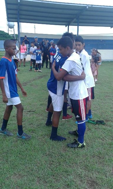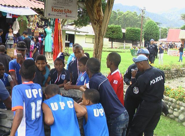 Durante dos días las unidades de la Policía Nacional a través de la Unidad Preventiva Comunitaria (UPC), realizó un convivio denominado “Jóvenes sin Fronteras Conviviendo en Paz”, actividad que se llevó a cabo en los predios del cuadro deportivo 20-30 ubicado en el corregimiento de Pedregal provincia de Chiriquí. En esta actividad deportiva participaron más de 75 niños y jóvenes 12 a 19 años de edad provenientes de Curundú, El Chorrillo, Samaria. Los jóvenes disfrutaron de un partido de fútbol junto a los de Pedregal, de la provincia de Chiriquí. En este evento también se mostró la exhibición de otras disciplinas como Tang Soo Do, Boxeo y competencia grupales, giras a lugares turísticos de la provincia y a su vez se les hizo entrega de regalos y reconocimientos. El Capitán Royban Rudas de la Unidad Preventiva Comunitaria quien coordinó este evento, destacó que estas actividades forman parte de los programas de “Convivencia Pacífica” de la Policía Nacional. “Con esto logramos la integración de niños y jóvenes de barrios populares de la ciudad capital y el interior del país, quienes buscan otros medios para combatir los malos hábitos” agregó. Se trata de jóvenes de sectores como Vista hermosa, Villa Escondida, Villa La Paz de la provincia de Chiriquí, en las edades de 8 a 13 años, donde la Policía Nacional a través de programas preventivas ha logrado disminuir los niveles de inseguridad.