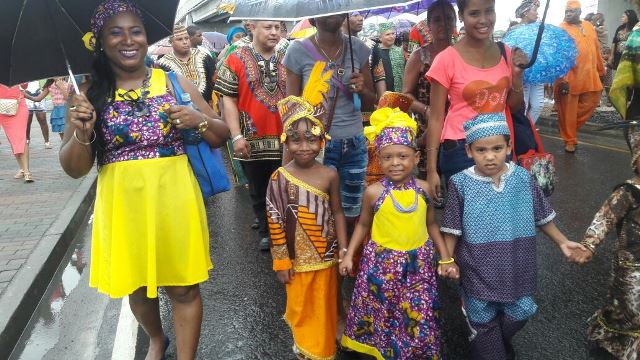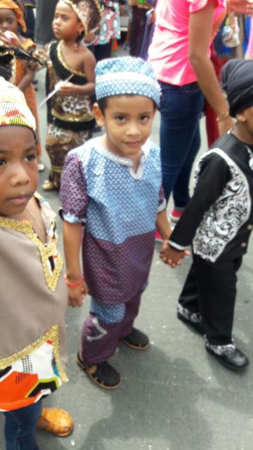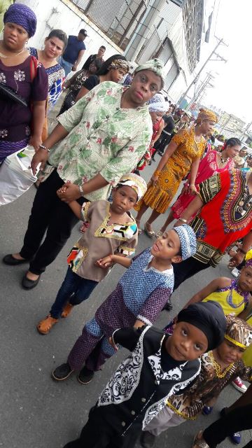 Unidades de la zona policial de Colón, de la oficina de Seguridad Ciudadana y los niños del centro de atención integral a la primera infancia Los Pininos, participaron en el desfile que se realizó este domingo 28 de mayo en la celebración del mes de la etnia Negra. Las unidades al igual que los niños estaban vestidas con los trajes alusivos a la celebración, compartieron con las diferentes representaciones de entidades públicas, escuelas y colegios que desfilaron desde la plaza Milenium hasta a calle 14 conocida como la recta de la zona libre, donde se dieron diferentes actos. El comisionado Benjamín Sambrano también participó de la actividad, además de brindarles la seguridad a las personas que disfrutaron del evento.