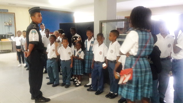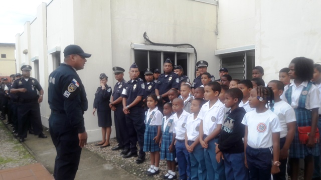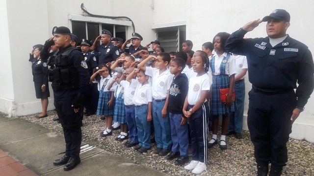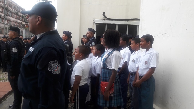 Un total de 30 estudiantes que cursan el V grado del centro de enseñanza básico general República de Paraguay, acompañaron a las unidades de la tercera zona policial en acto cívico. Los estudiantes compartieron con las unidades la izada de la bandera que se realiza todos los lunes en la zona, luego el capitán Victo Sánchez, les hablo de la importancia de rendir honor a los símbolos patrio. AL final del acto el subteniente Luis González les dio una pequeña charla donde los invitaba decirle no a la violencia. |
