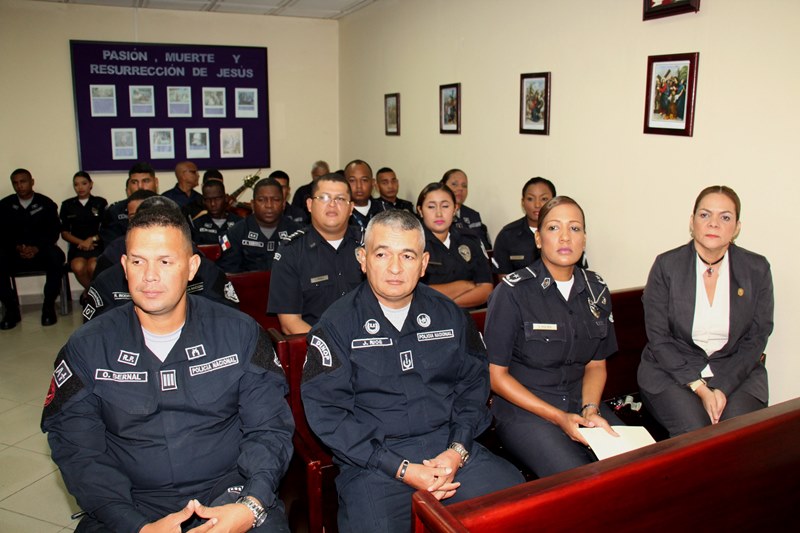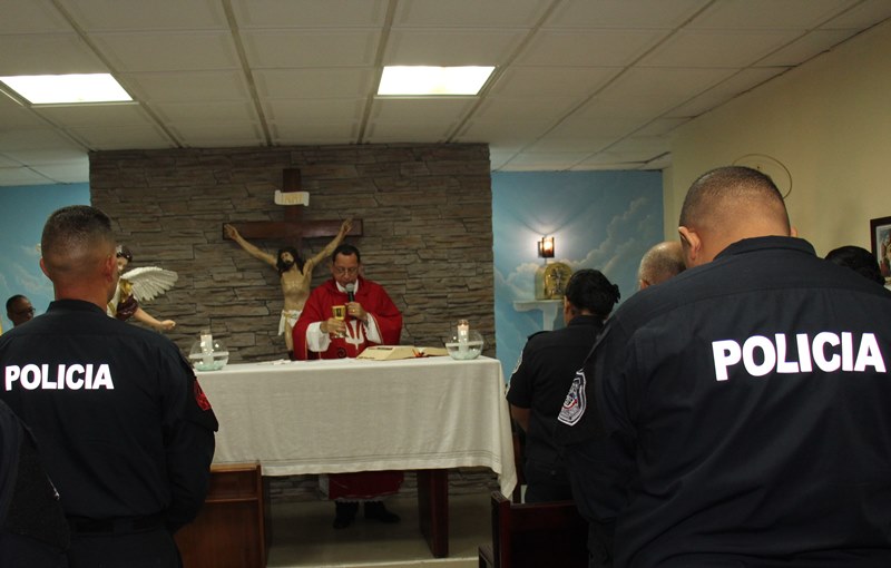 Personal juramentado y no juramentado de la Policía Nacional participaron este jueves 1 de junio, en la tradicional Eucaristía este jueves 1 de junio, donde agradecieron al “Todopoderoso” por las bendiciones brindadas. La misa fue ofrecida por la Dirección Nacional de Operaciones y El Grupo de Apoyo al Servicio (GAS), en ella estuvo presente el Comisionado José Ríos, Director Nacional de Operaciones. La misma fue transmitida por Radio María, presidida por el capellán Edgar Flores quien resaltó la labor realizada por el uniformado y los miembros de la institución, a su vez elevó una plegaria a Dios para que los proteja en su caminar. En tanto, la Mayor Thelma Palma fue la encargada de leer el mensaje institucional por parte de la Dirección Nacional de Operaciones, en el que reiteró su compromiso con el prójimo y con el buen nombre de la institución, para ser testimonio viviente de vocación, servicio digno y útil en pro del engrandecimiento nacional. |